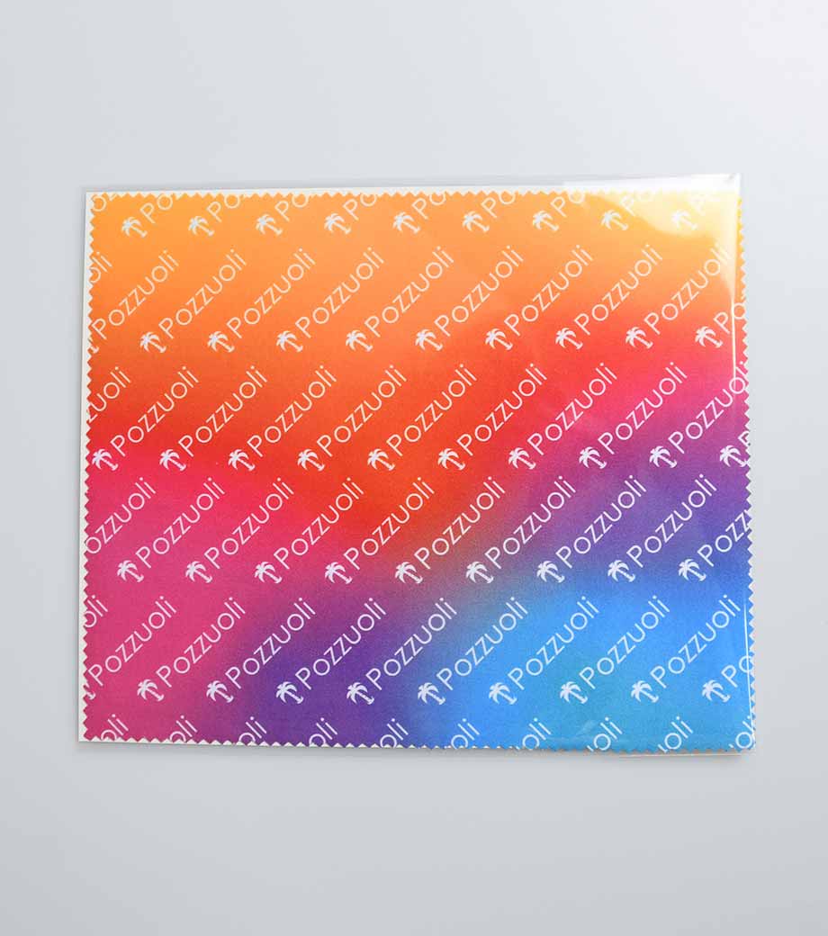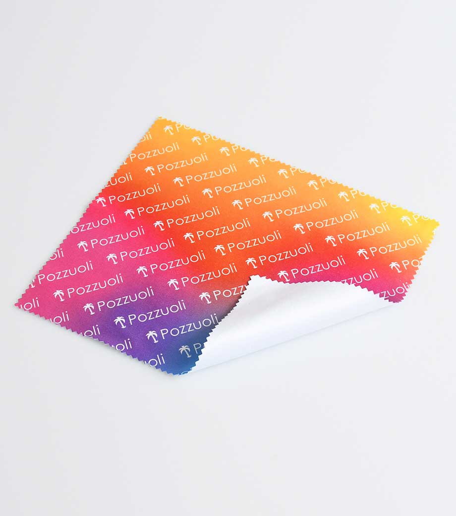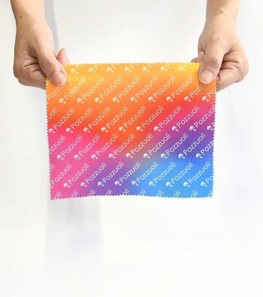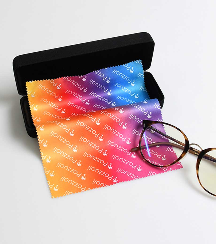 【全面フルカラー印刷】オリジナルマイクロファイバークロス(180×150)は、なめらかな触り心地で程良い光沢を感じる超極細繊維マルチクロスです。メガネやスマホ・モニタの画面の油脂も乾拭きするだけでキレイになります。水洗いもOK!吸水量は綿の約3倍、速乾性に優れお手入れ簡単です。メガネケースに収納しやすい長方形タイプ。実用的で使用頻度の高いアイテムです。