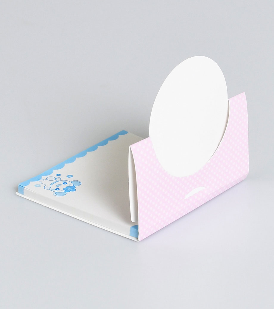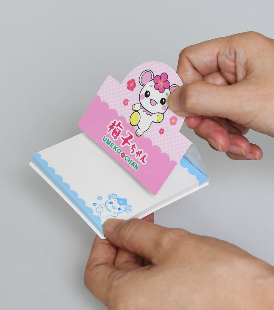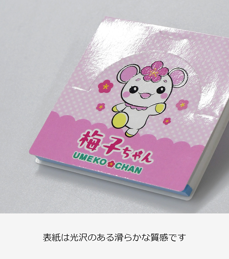1色ロゴ印刷ができ、名入れ部分が見えるパッケージで販促効果も抜群です。コスメショップのノベルティや、学習塾の入会特典にもおすすめです。