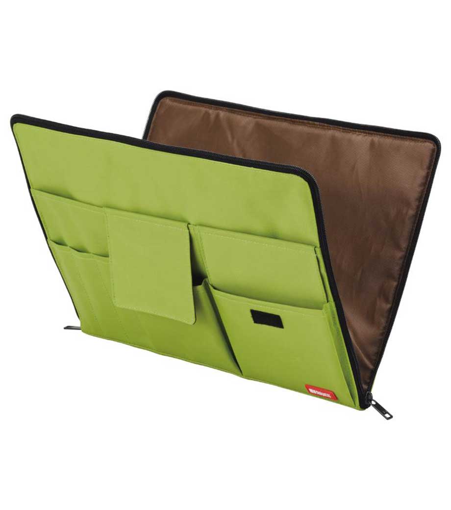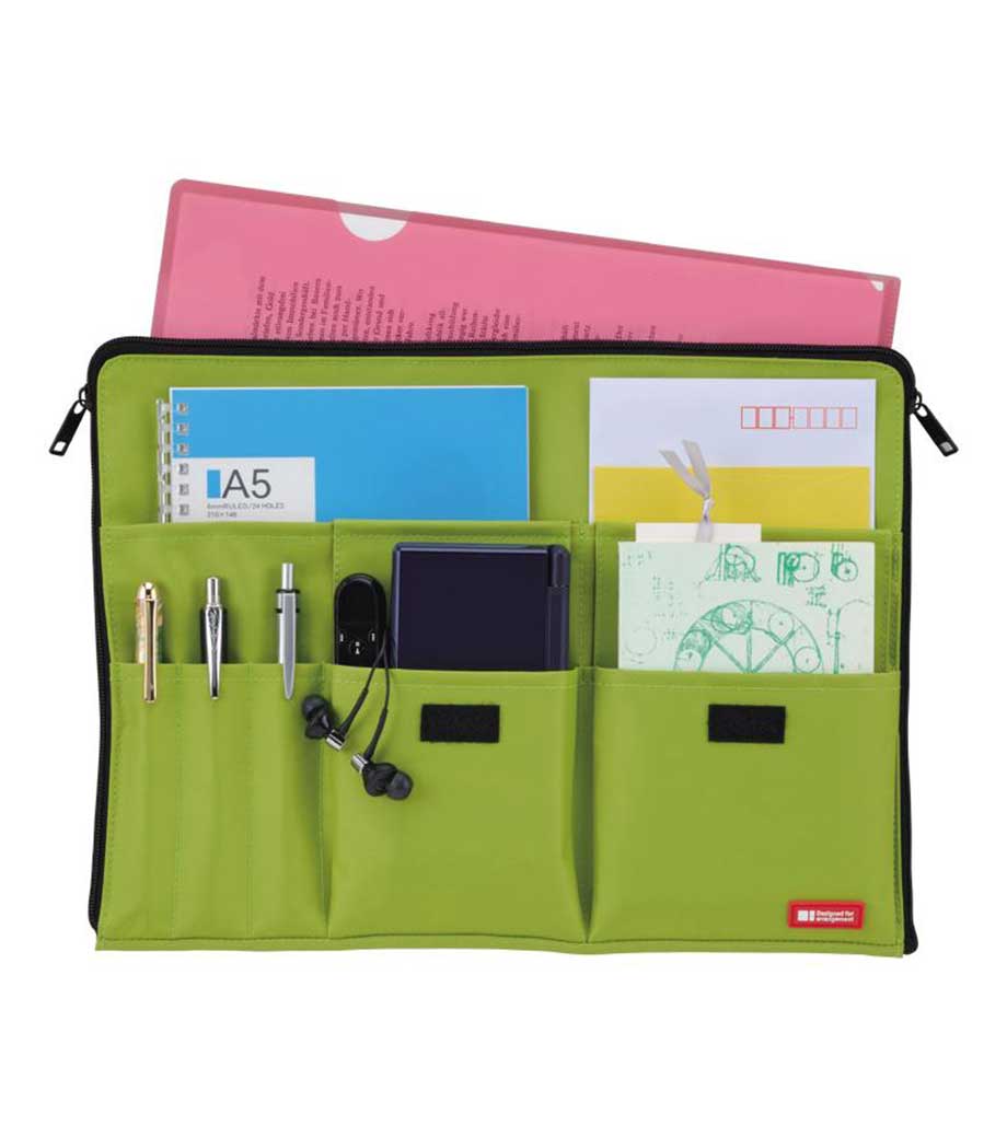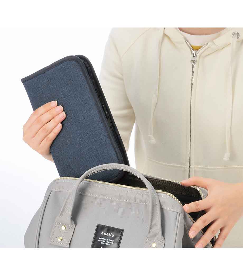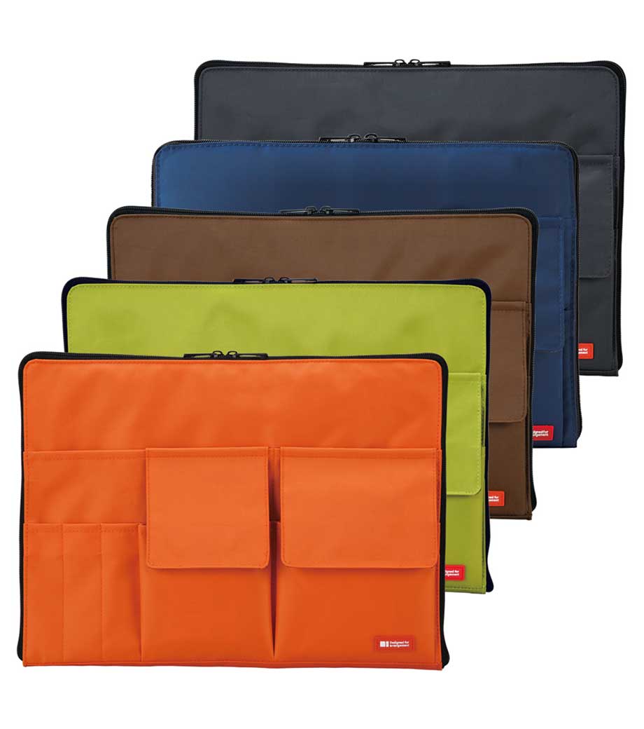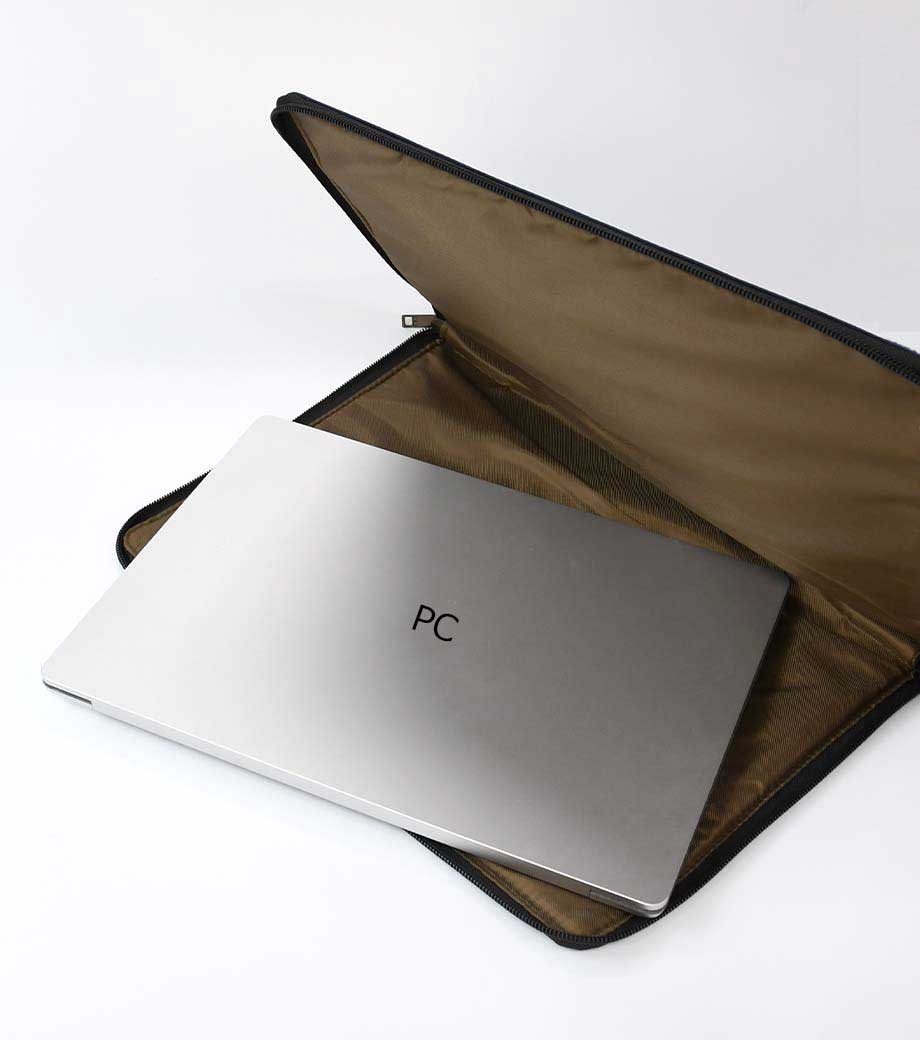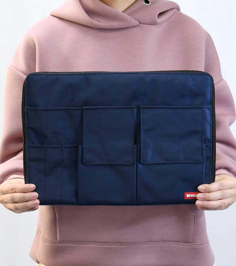 タテにしまえるPCバッグは、13インチのノートパソコンまで収納可能なPCバッグです。超軽量の約170g!厚めのクッションがPCを傷付けずに衝撃から守ってくれます。A4書類も縦にすっと入り、外側に1つポケット付きです。開閉に便利なダブルファスナーで出し入れもスムーズ。バッグインして使えるスリムな縦型は、ビジネスリュックにもインしやすくかさばらずに最適です。ブラックとグレーの色合いはどんなスタイルにもピッタリですね。