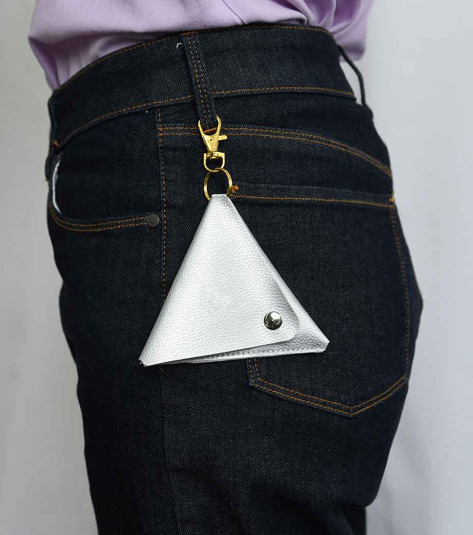 反射仕様のミニポーチ。車のヘッドライトや街灯の光を反射してキラキラ光り、歩行者の存在をアピールします。夜間や荒天時の外出時に交通安全グッズとして活躍します。小銭や鍵等のちょっとした小物の収納に便利なサイズ感。フック付きのキーホルダータイプなので、バッグやベルトループなど、さまざまな場所に簡単に取り付けられます。