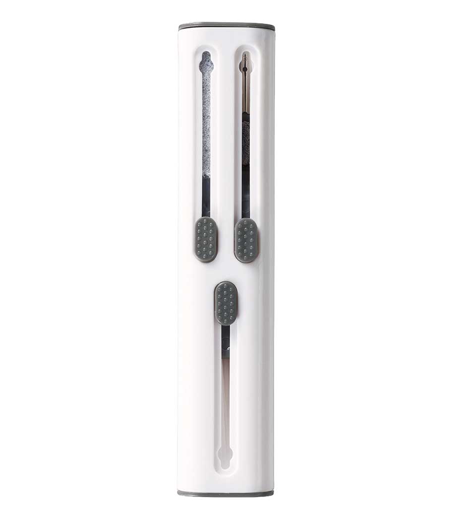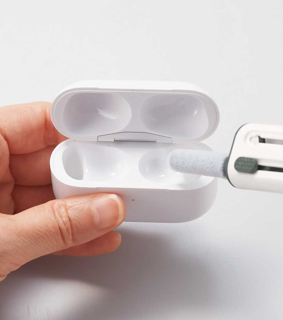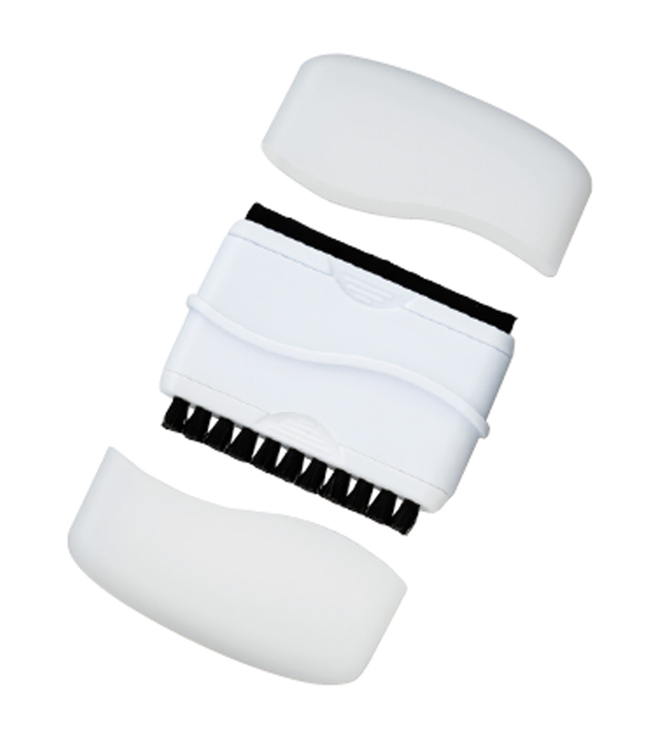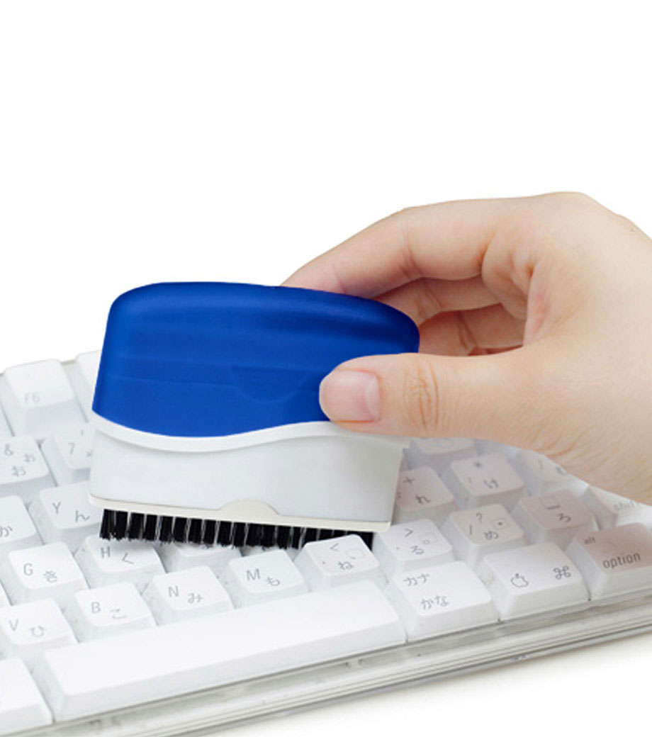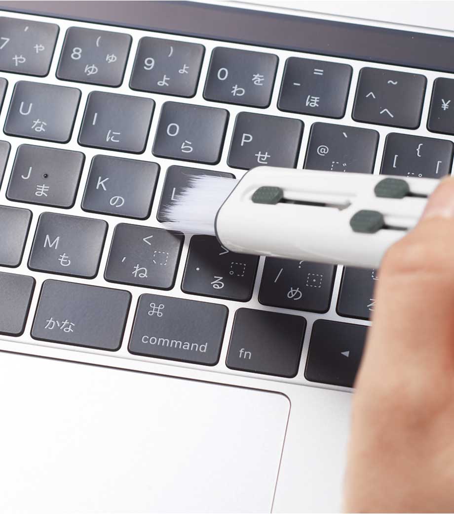 手のひらサイズで扱いやすいコンパクトなお掃除アイテムです。ボタンをスライドするだけでブラシがスッと出てきて、キーボードやデスク周りの細かい隙間のホコリも手軽にひと掃き。柔らかな毛先でやさしくホコリや汚れを取り除けます。