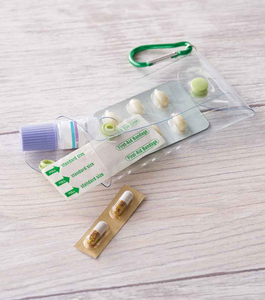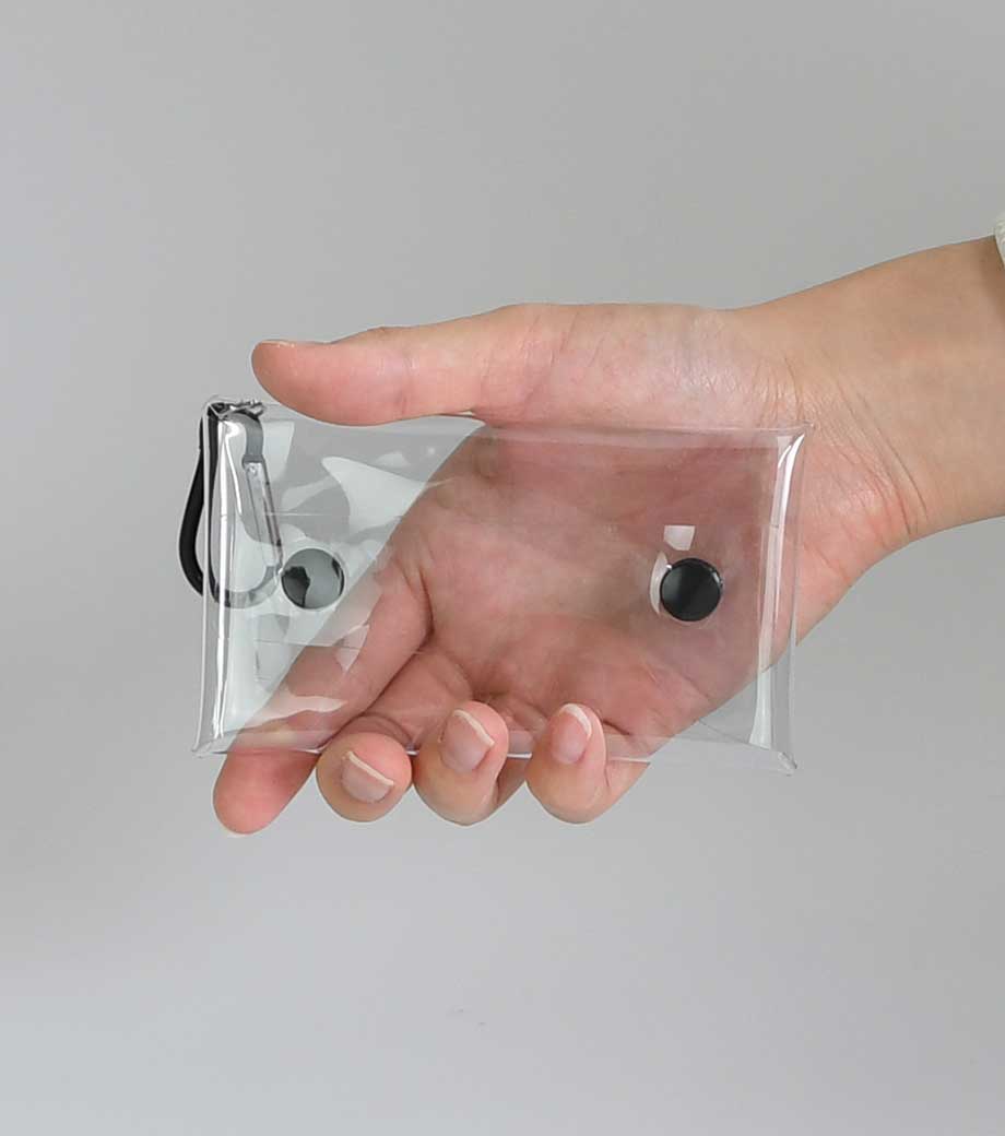 おしゃれなクリア素材で日常使いに便利なマルチケースです。絆創膏や目薬など、バッグの中で迷子になりがちな小物を収納できます。カラビナ付きでリュックやベルトに取り付け可能。カラバリ豊富なので、缶バッジや小ぶりなアクリルスタンドなどを入れる推し活グッズにもおすすめです。