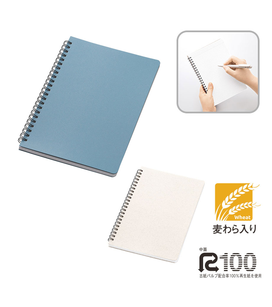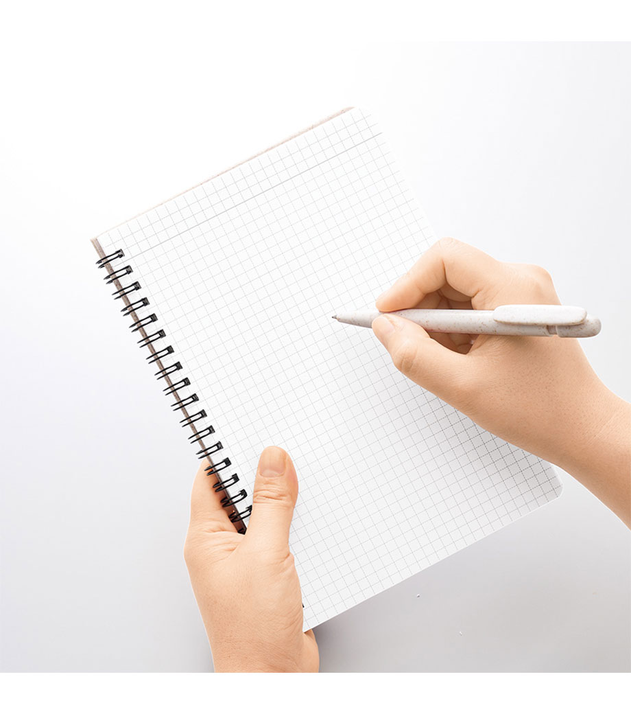 リサイクルA5ノートは、使いやすい定番型のA5ノート。用紙は6mm幅罫線入りで、勉強や打ち合わせのメモをたくさん書くのに便利です。今や必需品のスマホでもメモは取れますが、書くことで脳内の情報を整理し、そこからさらにアイデアが生まれるのもアナログならでは。