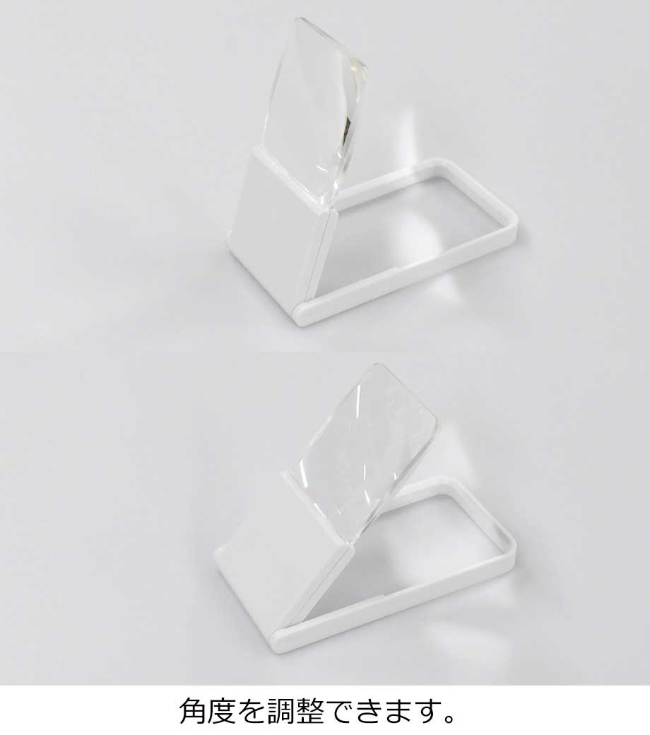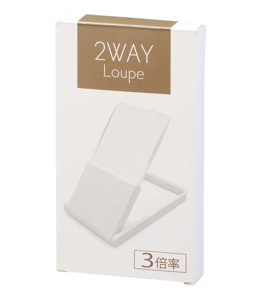 2WAYルーペは3倍率のシニアルーペ。角形レンズで隅々まで大きく見え、説明書などの小さな文字をハッキリ見ることができます。スタンド使用も可能。針の糸通しやボタン付けなど両手を使う細かな作業に便利です。カードより少し長いサイズ感で、ポケットに入れて携帯しやすいのも嬉しいポイントですね。
