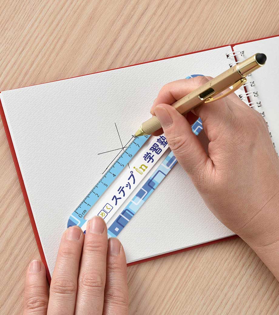 クリップスケールは、定規・ブックマーカー・クリップの3役をこなす便利な文房具です。勉強中に本のページをはさんでブックマーカーにしたり、大きめのクリップとして教科書の開き防止やページの目印に使ったりと、使い方はいろいろ。ふで箱の中でもかさばらない、ちょうどいいサイズ感もポイントです。