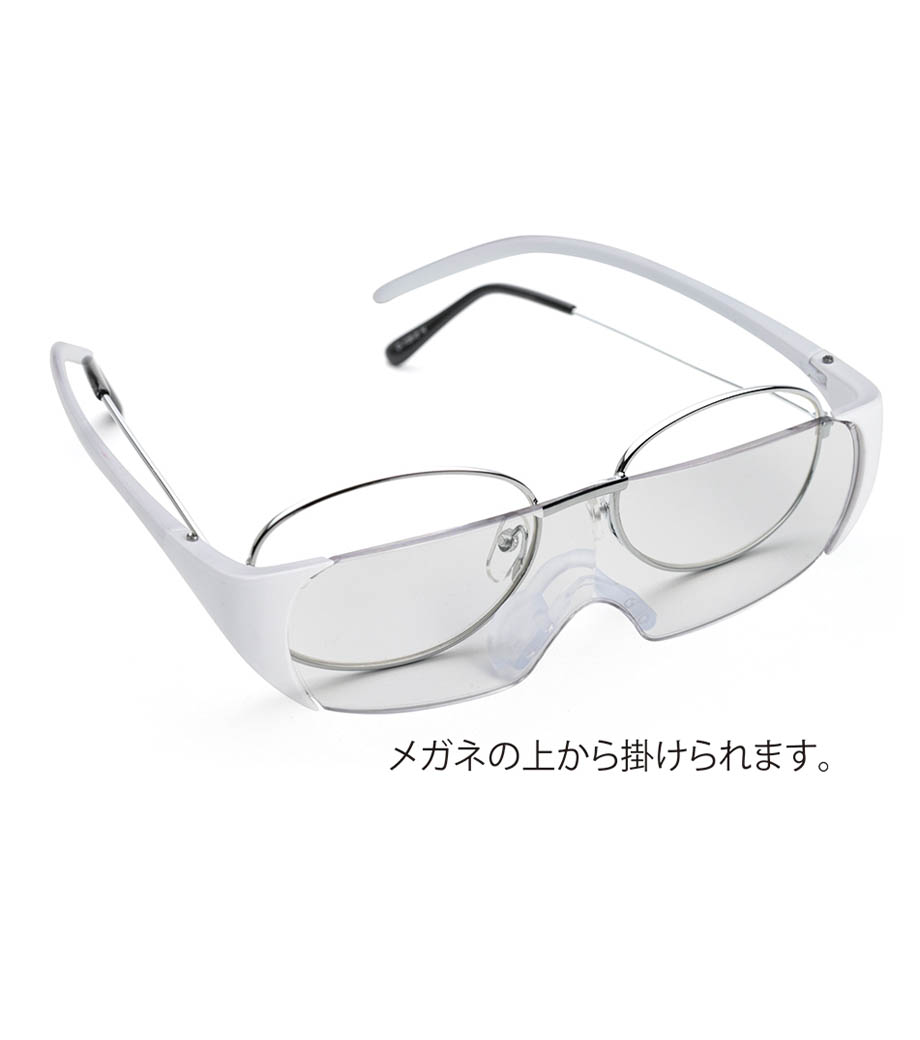 メガネの上からかけられるので、小さな文字を読む時、縫い物で針穴に糸を通す時、すぐに作業を開始できますよ。