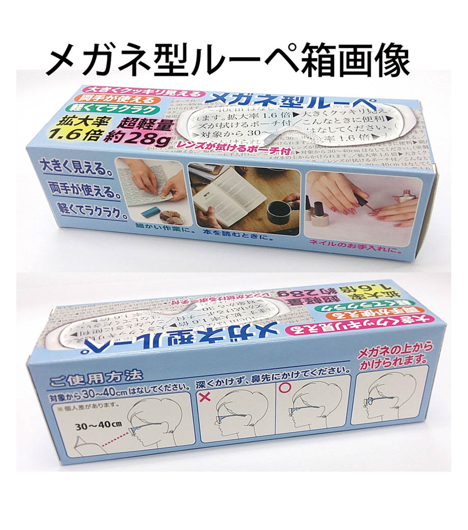 メガネ型ルーペは拡大率1.6倍、超軽量で本体約28gのルーペメガネです。