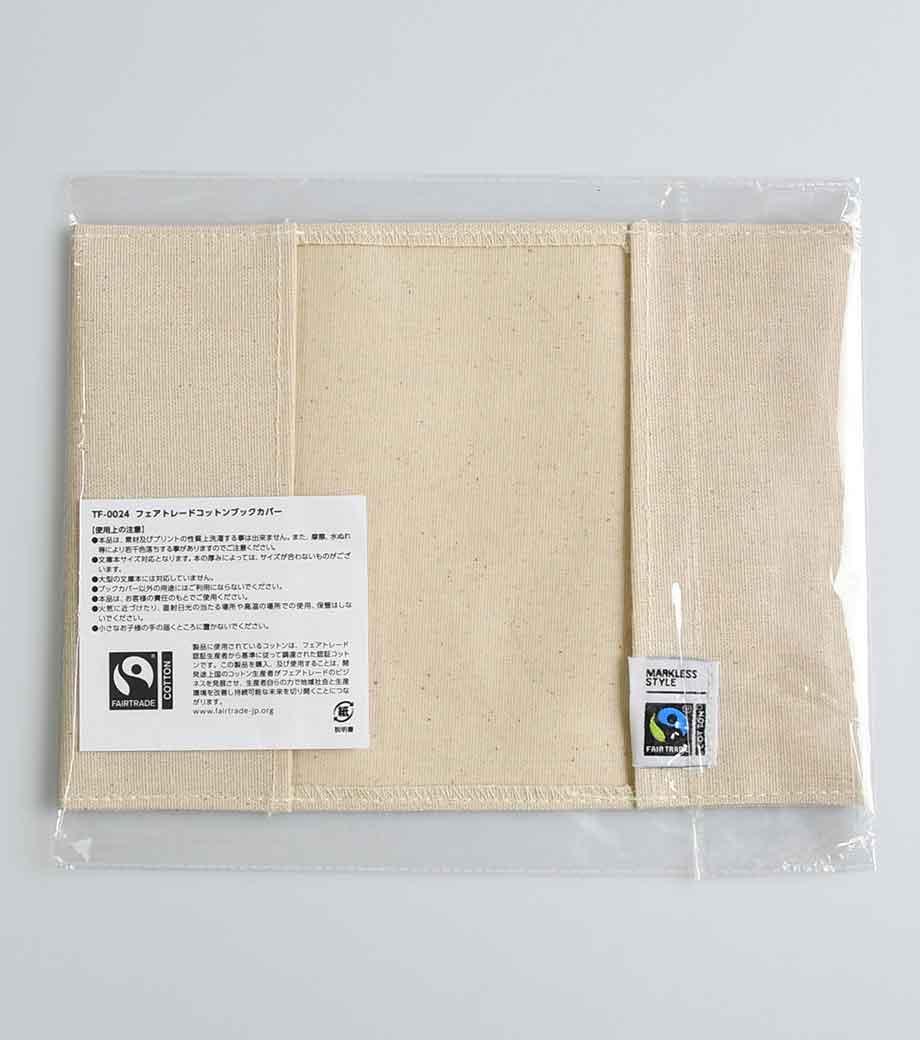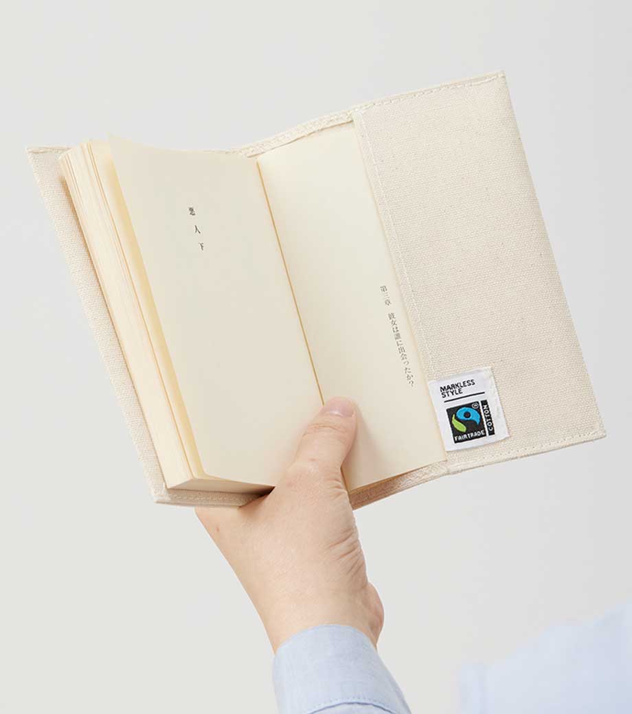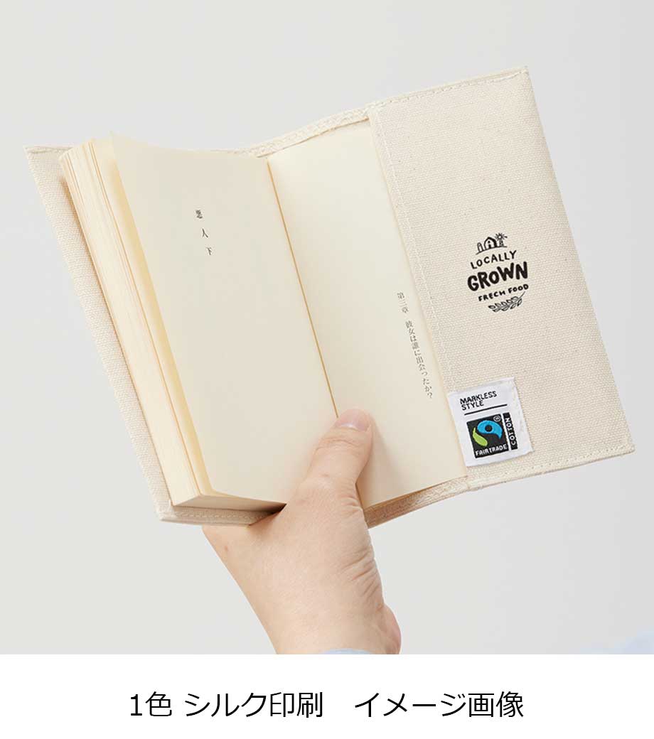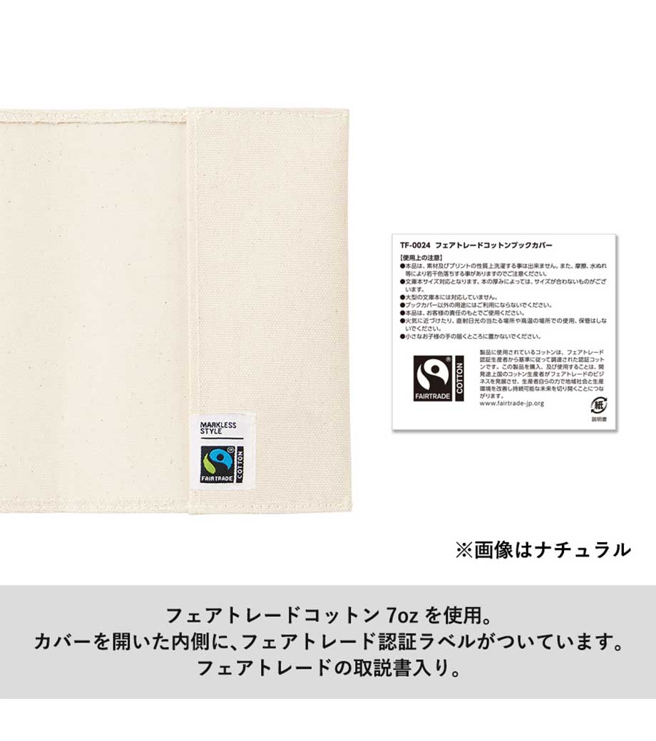 ブックカバー内側には国際フェアトレード認証ラベルつき。SDGsやサスティナブルへの取り組みもアピールできます。