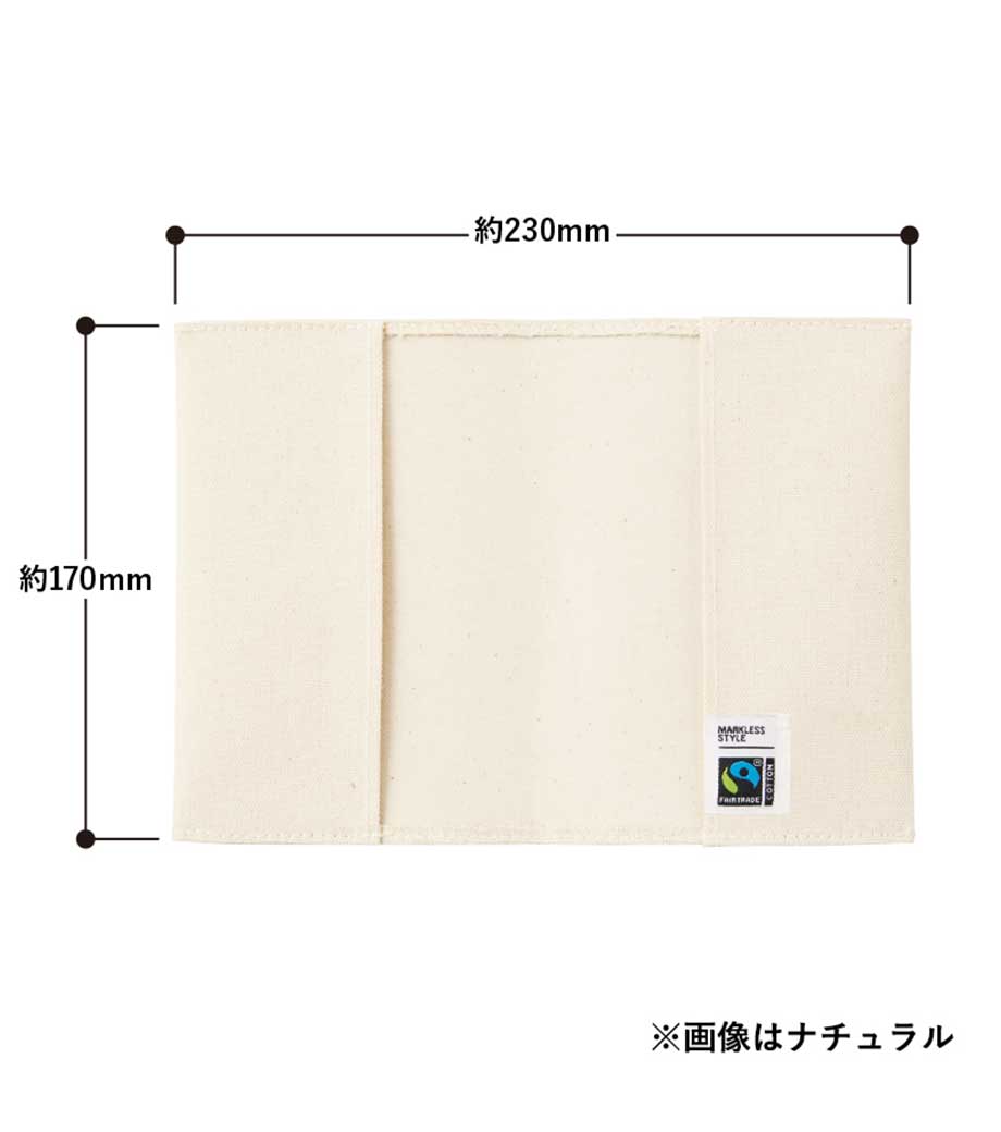 フェアトレードコットンブックカバーは、名入れが映えるシンプルでナチュラルな風合いが特徴です。