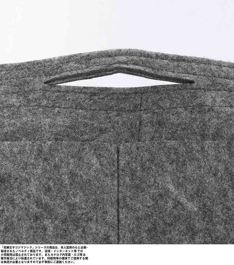 収納王子コジマジック・バッグインマルチキャリングボードは、リュックやトートに入れやすい縦型タイプの収納バッグです。カバンから取り出しやすい持ち手付き。壁掛け使用もできちゃいます。スマホやペンの収納に適した4か所の小物ポケットと、9.7インチまでのタブレットが入る大きなポケット付き。しっかりとしたフェルト生地ですが重さはわずか約65gで持ち運びに便利です。
