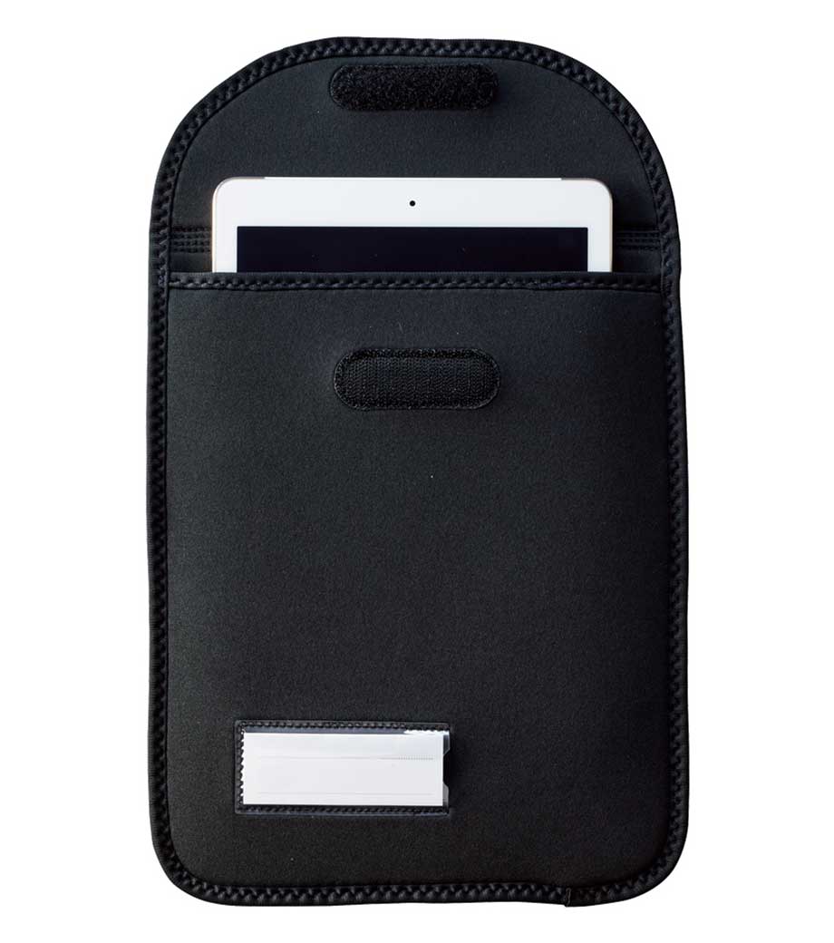 柔らかく弾力のあるウレタン素材で、クッション性抜群。PCやタブレット端末に傷が付きにくく、やさしく保護してくれます。加えて62gという軽さ!フラットタイプでかさばらず、鞄への出し入れもスムーズで楽々です。開け閉めも簡単な面ファスナーは厚みやサイズによって調整可能です。誰の持ち物かすぐにわかるよう名前ポケット付きです。
