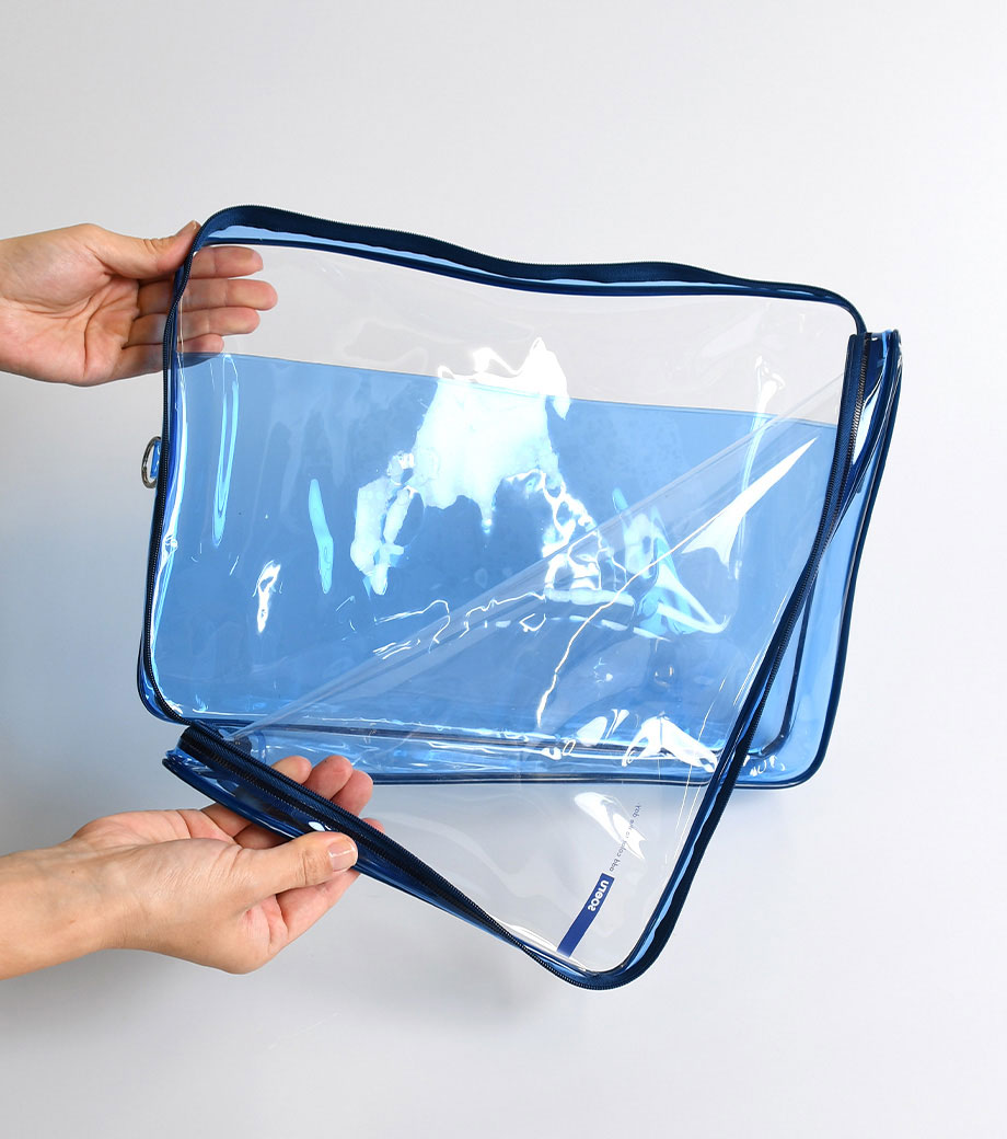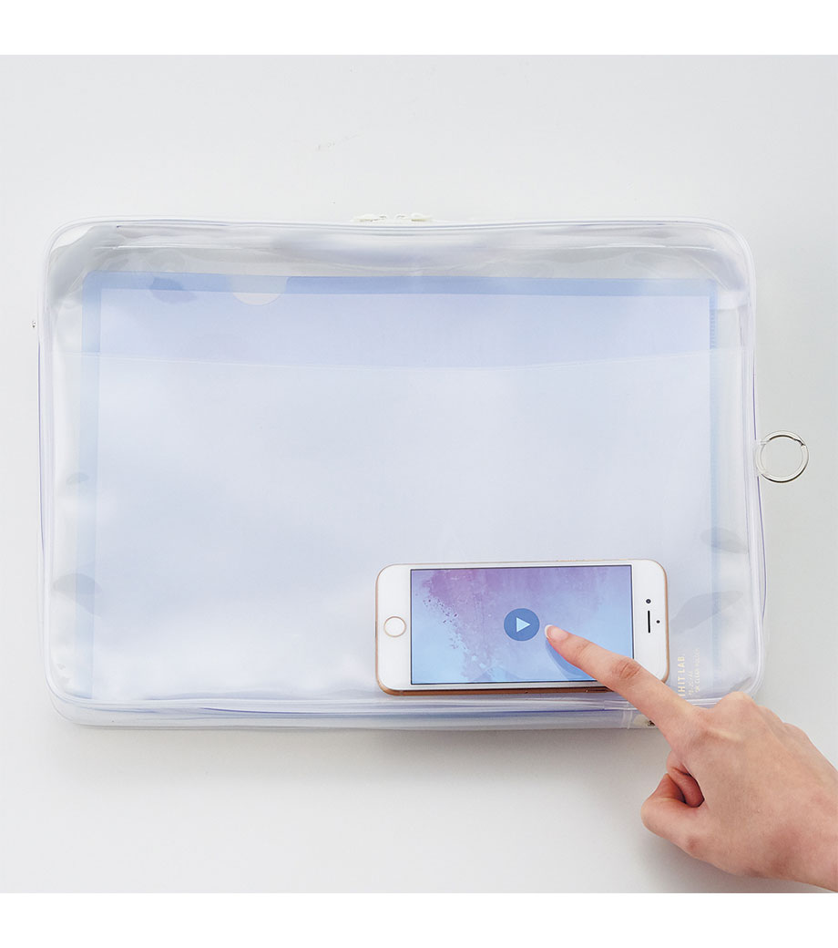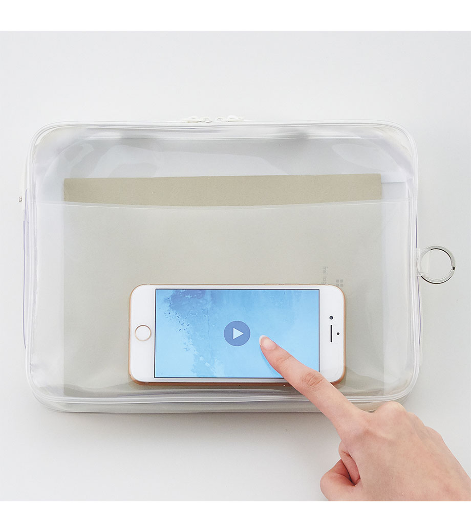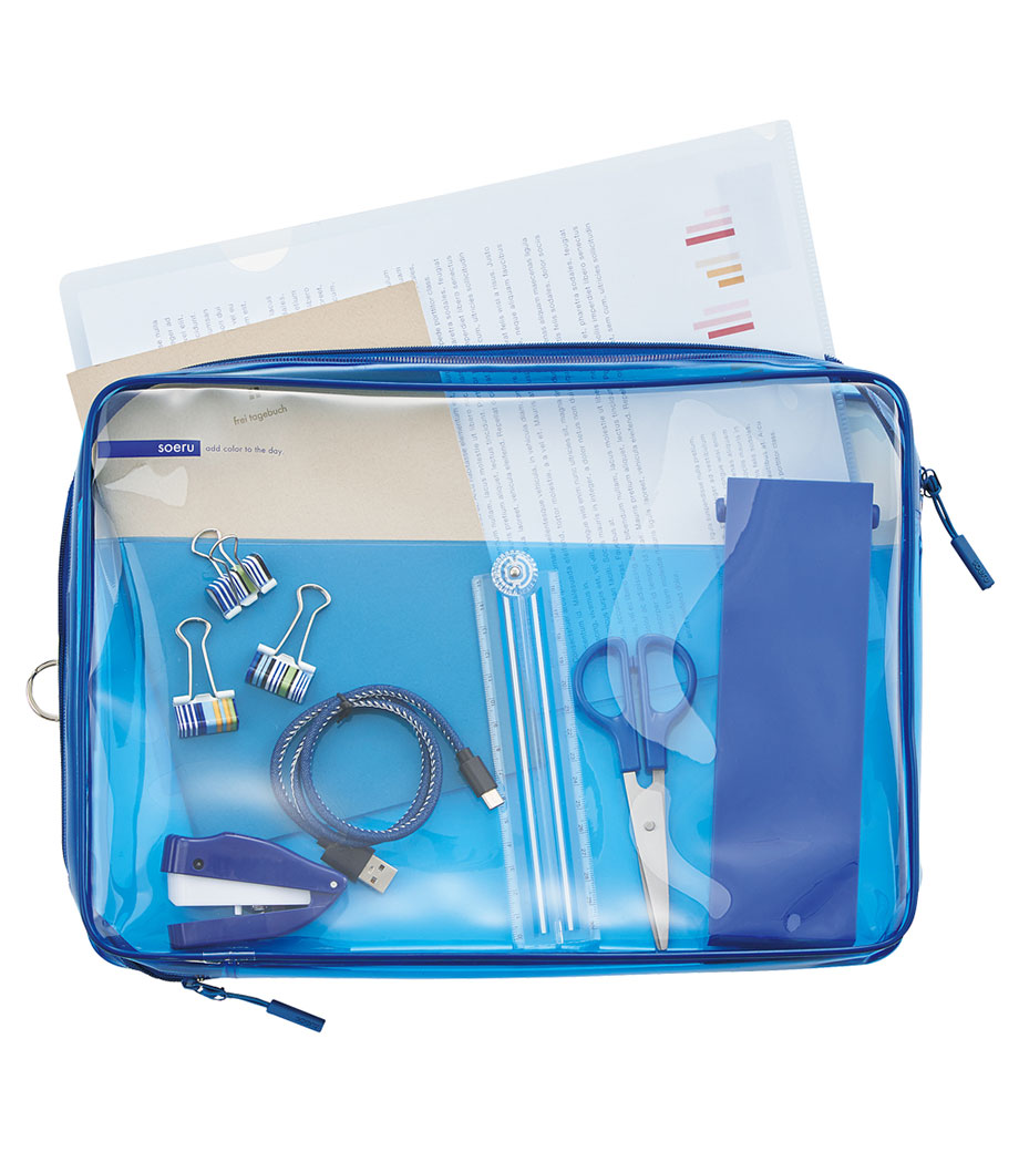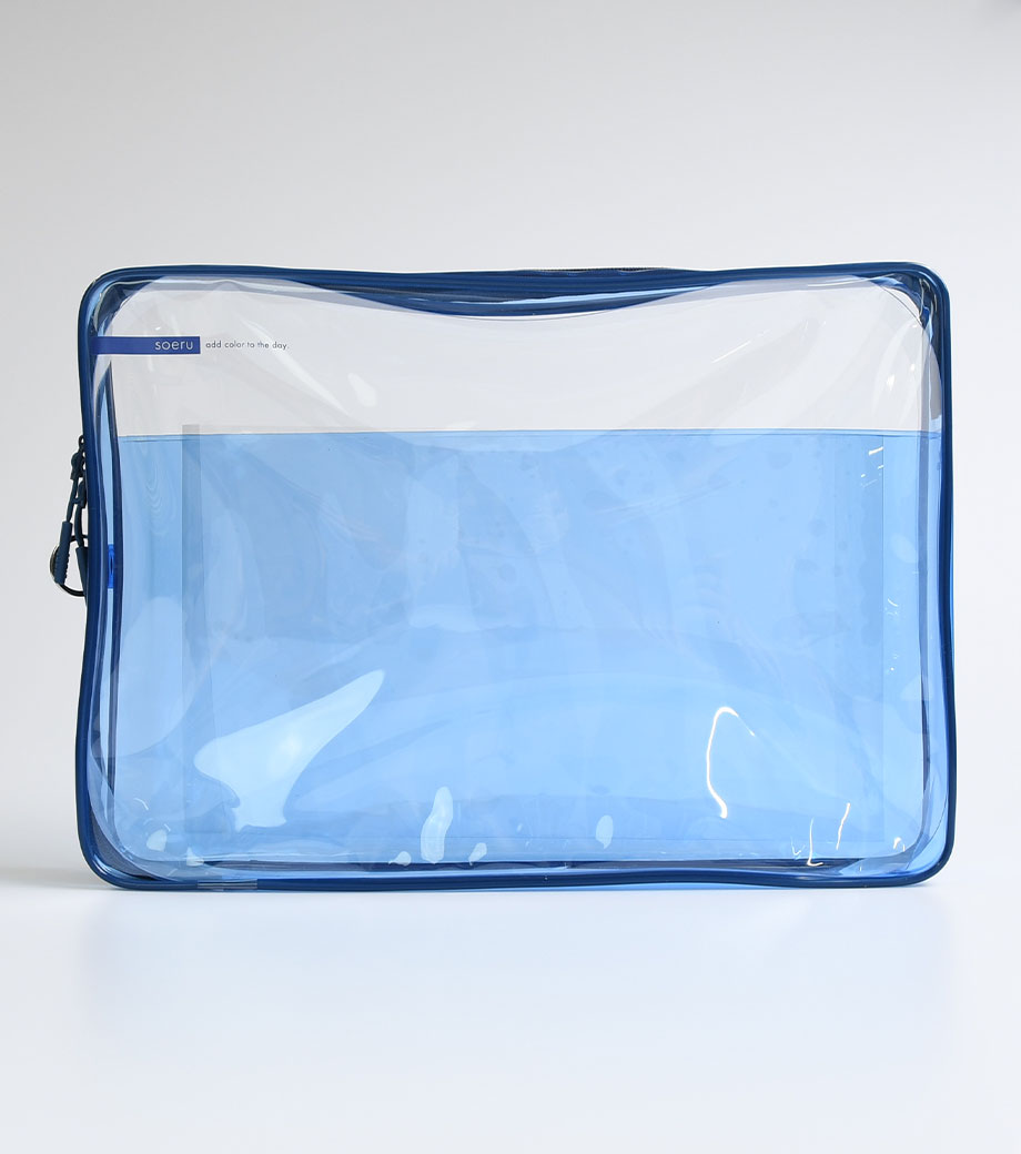 リヒトラブ soeru クリヤーボックスケース A5は、L字に大きく開いて出し入れしやすいケースです。開閉に便利なダブルファスナーで縦にも横にも使えます。ファスナーと同色の内ポケットがおしゃれなカラーリング。暮らしに彩りを“そえる”文具メーカーLIHIT LAB.(リヒトラブ)の商品です。側面のリングは、吊り下げたりキーホルダーを付けることができます。耐久性があり軽量なPVC素材を使用。A5ノートや手帳、小型タブレットの収納はもちろん、水着ポーチや旅行時のアメニティ入れとしても使えます。