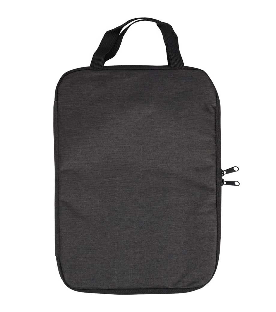 コの字に大きく開くダブルファスナーは出し入れしやすく快適です。フラットな形状で通勤、通学バックの中でもかさばらず持ち運び。しっかりハリのある素材で2mm厚のクッションが端末を保護してくれます。1色の名入れ印刷が可能で、企業名や学校名を入れた記念品におすすめです。