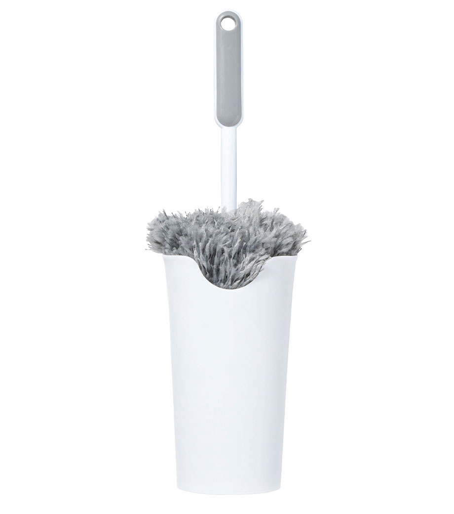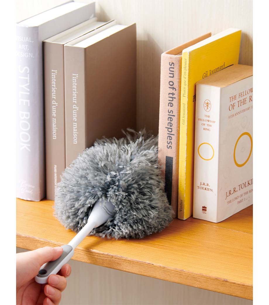 細かなホコリも絡め取るふわふわモップです。立てて置ける収納ケース付きで気づいた瞬間にサッと使える手軽さが魅力です。PC・家電まわりや窓枠、サッシ、本棚など幅広い場所で活躍します。