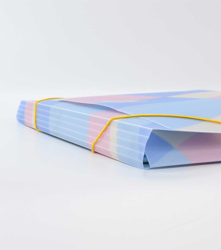 【全面フルカラー印刷】A4バインダーは、使い勝手のよいA4サイズのフタ付きバインダー。ゴム紐で手軽にフタを固定でき、大事な書類が汚れたり折れたりする心配がありません。マチが最大約25mmあるので、書類やノートなどをひとまとめに持ち運べます!打ち合わせや勉強に必要なものを入れておけば、スマートに取り出すことができますね。