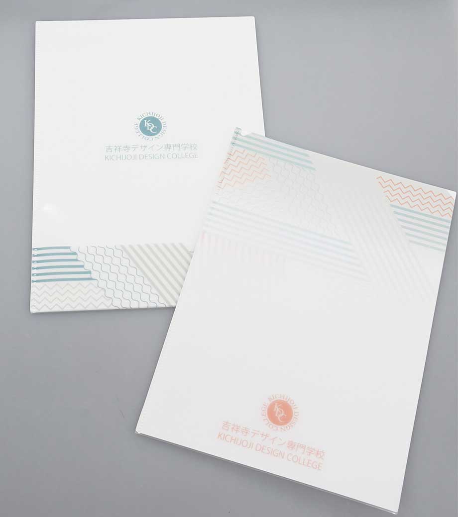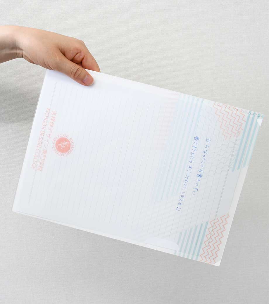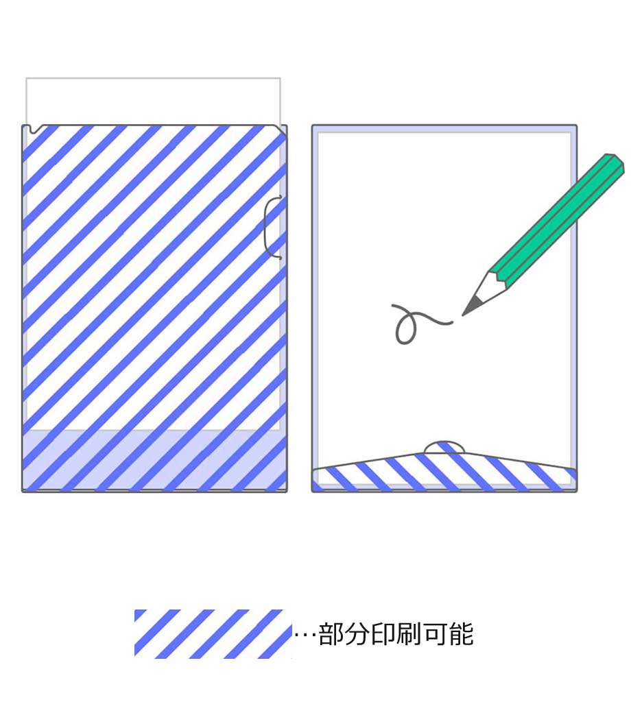 書類ポケットとボード面のストッパー部分にフルカラー印刷が可能。学校名を印刷してオリジナルスクールグッズにおすすめです。