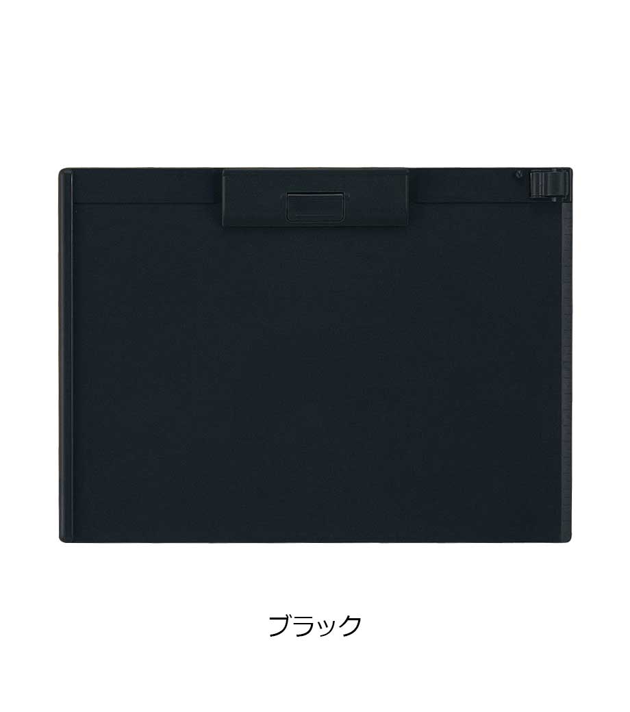 程よい硬さなのでメモもとりやすく、しっかりしたクリップで名刺入れ・ペンホルダー付き。シンプルな黒と白の2色をご用意しています。