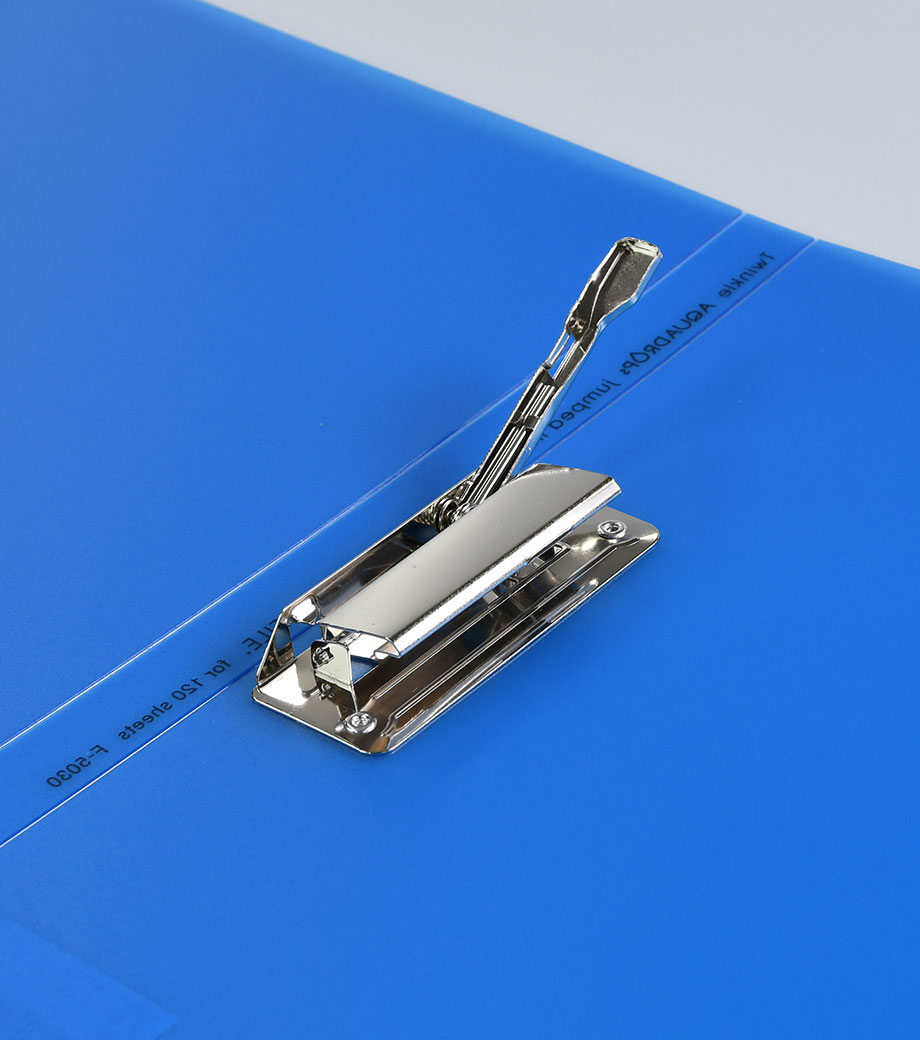 書類の穴あけ不要!A4規格のレバー式ファイル。最大120枚収容可能です。軽い力で開閉でき、書類をしっかりホールド。穴を開けたくない資料の保管に便利です。