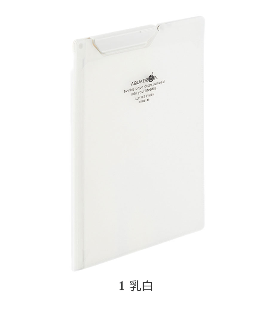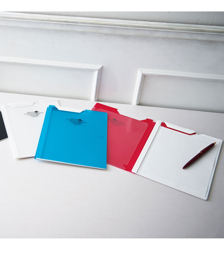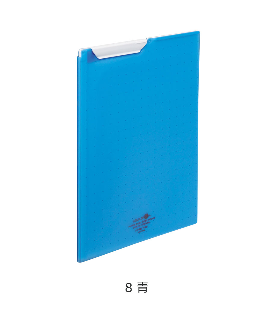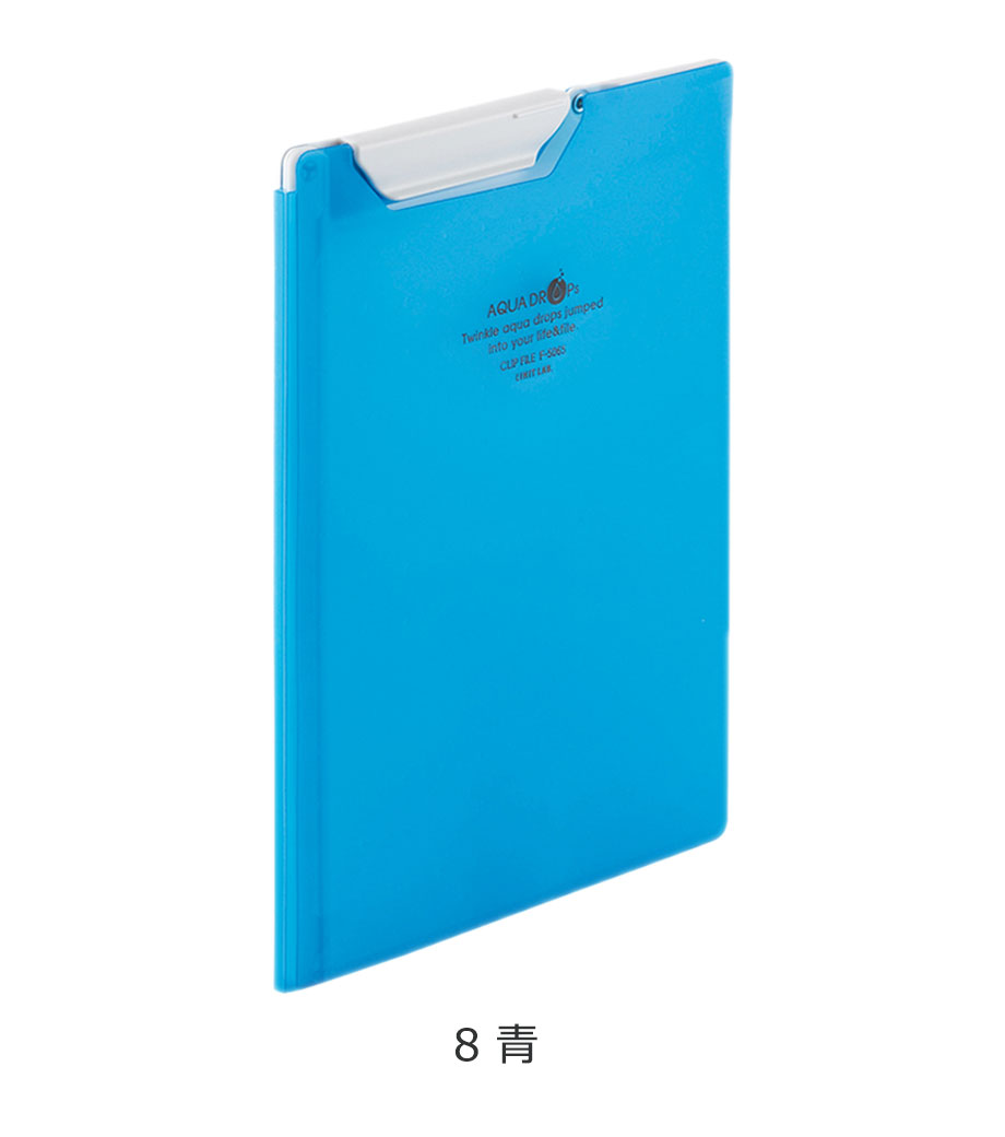AQUA DROPs クリップファイル(A5)は、ボード面がしっかりしているので、立ったままでも安定して記入ができるファイルです。コンパクトなA5サイズは、メモ書きよりもたくさん書けて、小ぶりなバッグにも収まる使い勝手の良いサイズです。薄型軽量で、持ち運びも楽々。スライド式のクリップは、開閉と同時に紙押さえも開くので、用紙の抜き差しがスムーズに行えます。