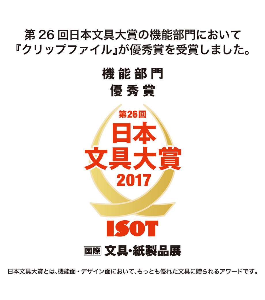 機能面・デザイン面において、もっとも優れた文具に贈られる第26回 日本文具大賞2017で、機能部門の優秀賞を受賞!ぜひ一度試してみてください。