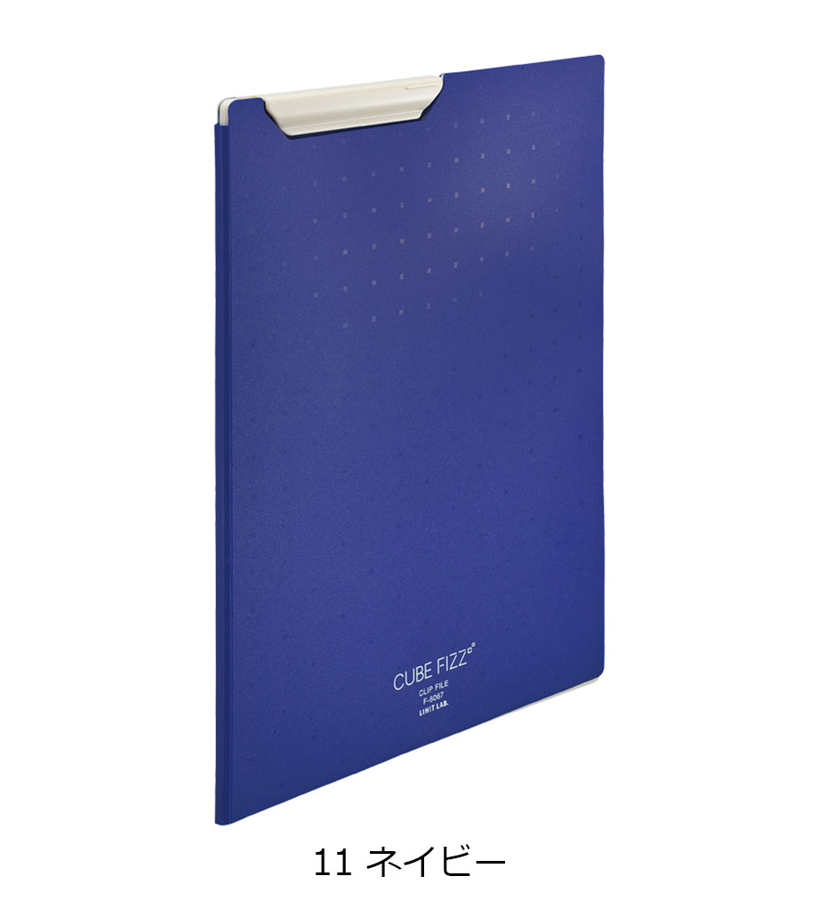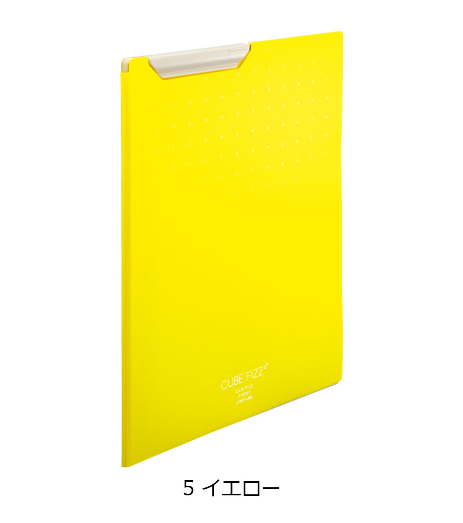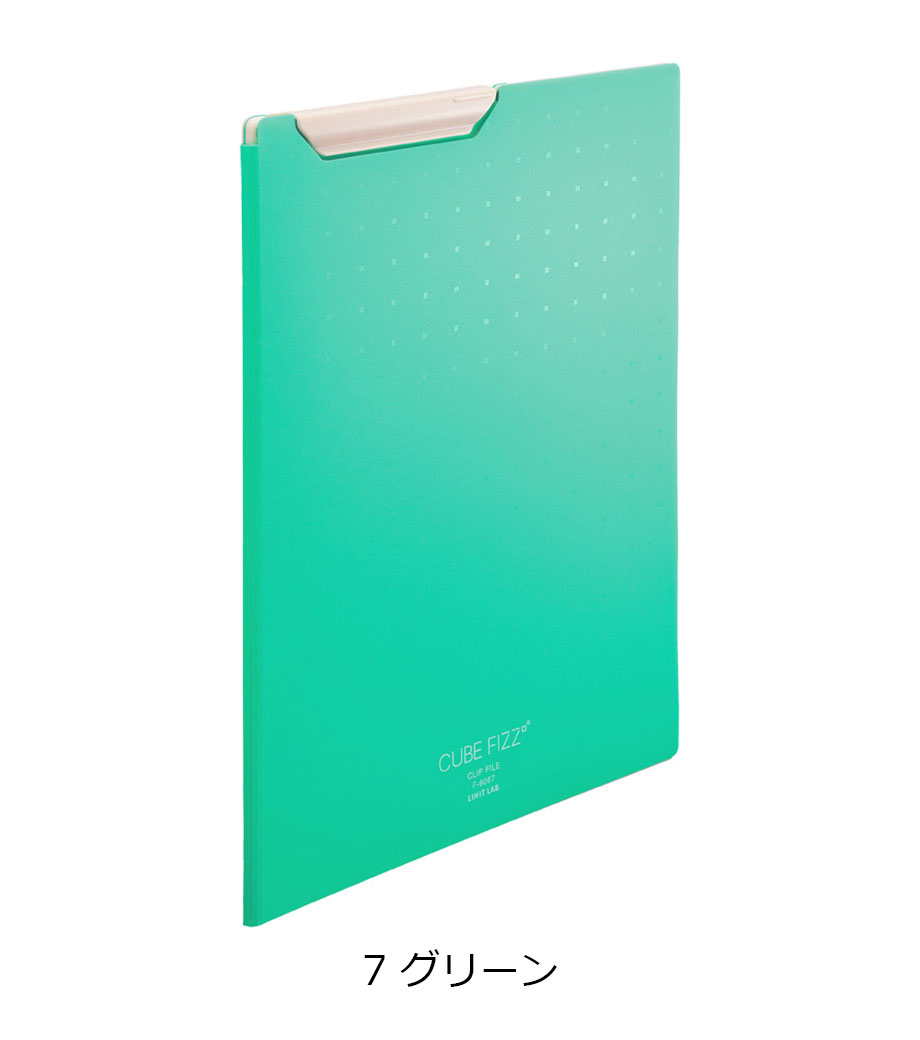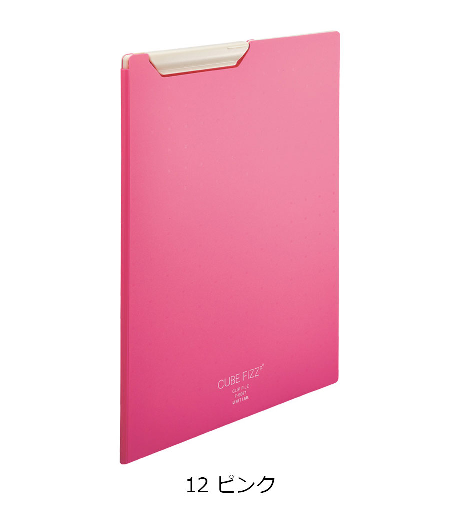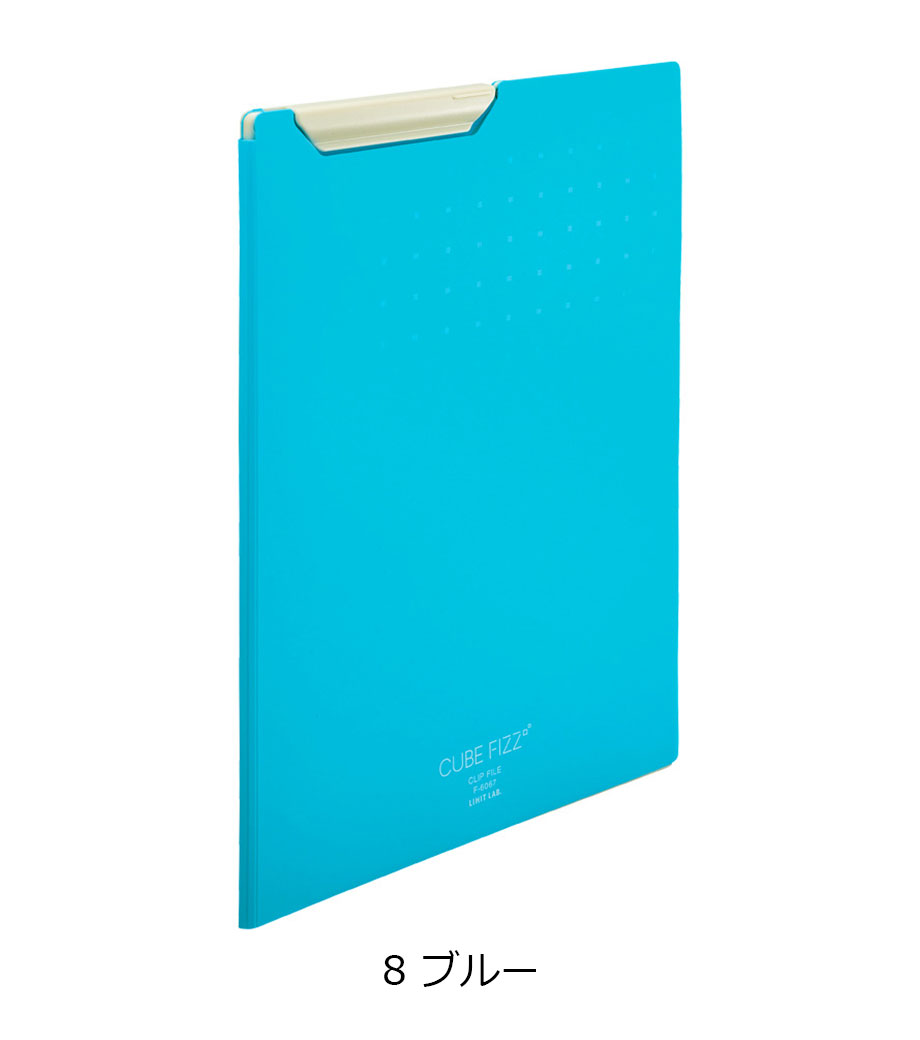 リヒトラブ CUBE FIZZ クリップファイルは、A4サイズのコピー用紙が20枚収容できるファイルです。表紙は360°折り返し可能。ボード面は厚みがありしっかりとしているので立ちながらの筆記に便利です。内側には透明ポケット付き。スライド式クリップは力もいらず楽に開閉できます。クリップの開閉と同時に紙押さえも開くので、用紙の抜き差しがスムーズ。本体色と同色の紙押さえがおしゃれに彩りを添えます。カラフルな色合いでお馴染みの文具メーカーLIHIT LAB.(リヒトラブ)の商品です。