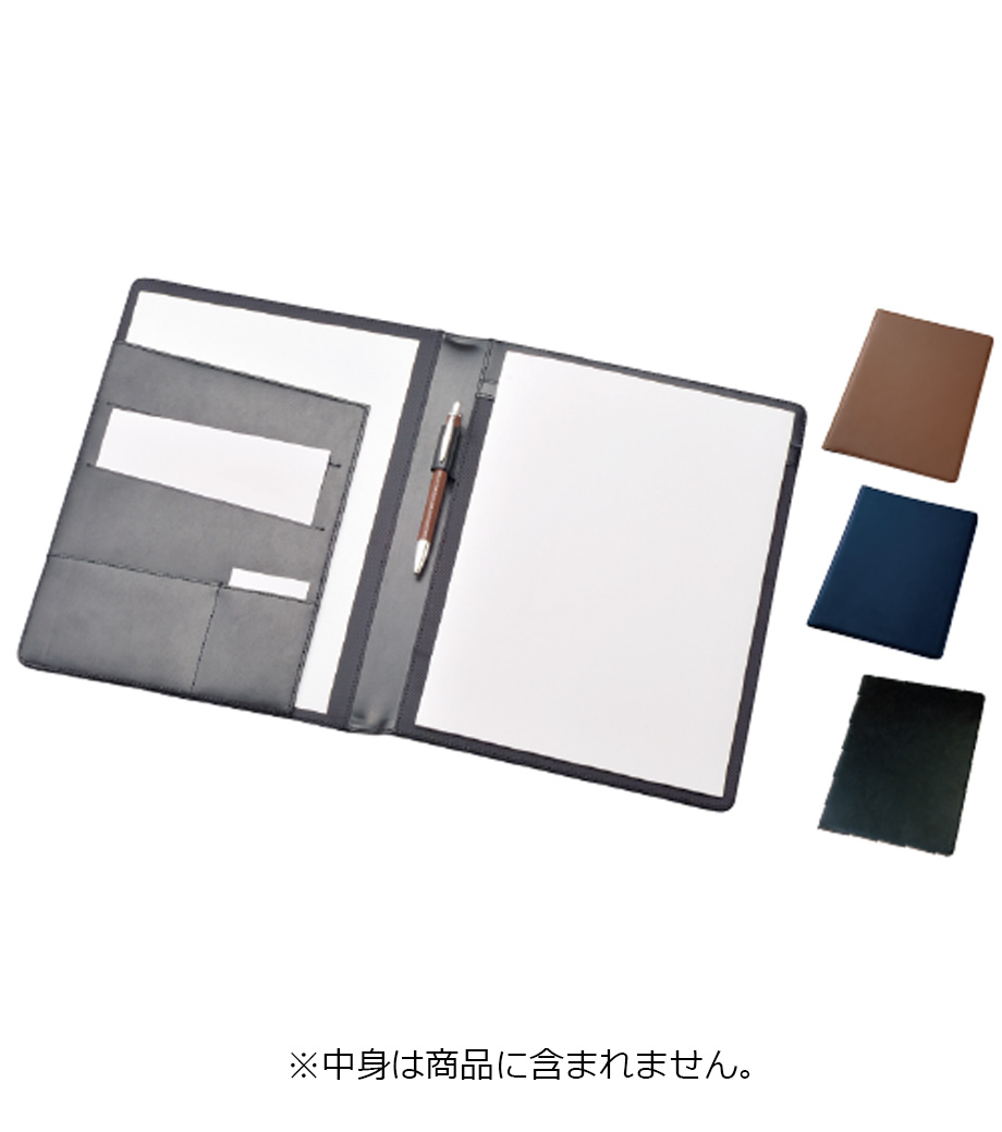 モバイルビジネスファイル A4は、会議に必要な様々なアイテムをひとつにまとめられるレザー風ファイルです。表紙に箔押し・空押し・1色印刷ができます。