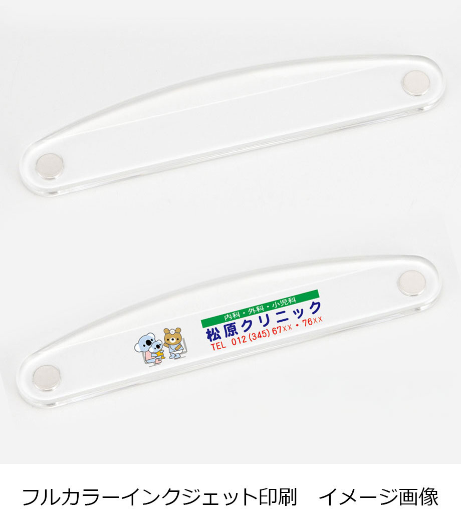 厚みのあるアクリル素材の透明感が魅力のマグネットです。イラストや写真をフルカラーで印刷でき、お手頃価格でオリジナルグッズが作成できます。しっかりくっつくネオジウム磁石で、実用性も抜群です。
