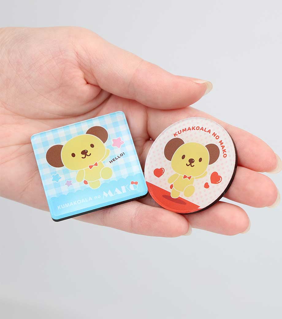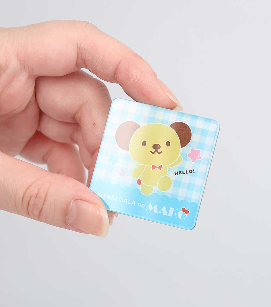 かわいらしい手のひらサイズで、お子さまから大人まで幅広い年齢層の方に喜ばれますよ。ショップのオリジナルグッズや同人グッズ、飲食店のロゴを印刷したオープン記念品などにいかがでしょうか。丸型・四角型からお好きな形状をお選びいただけます。