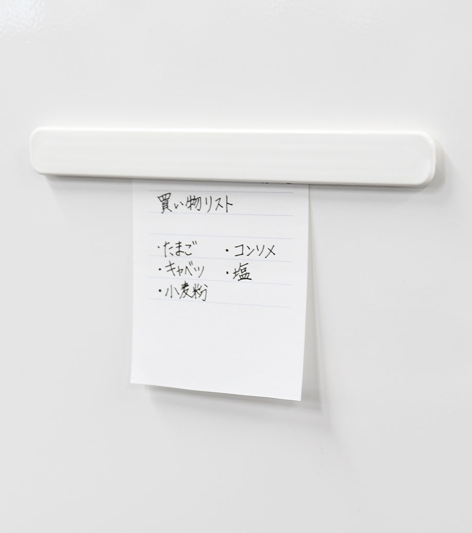 冷蔵庫の扉、マグネットで貼り付けたメモでいっぱいになっていませんか。マグネット付クリップは、メモやレシート類をまとめて挟んで貼れる便利なクリップ。強い磁力で約10枚のコピー用紙も楽に挟めます。