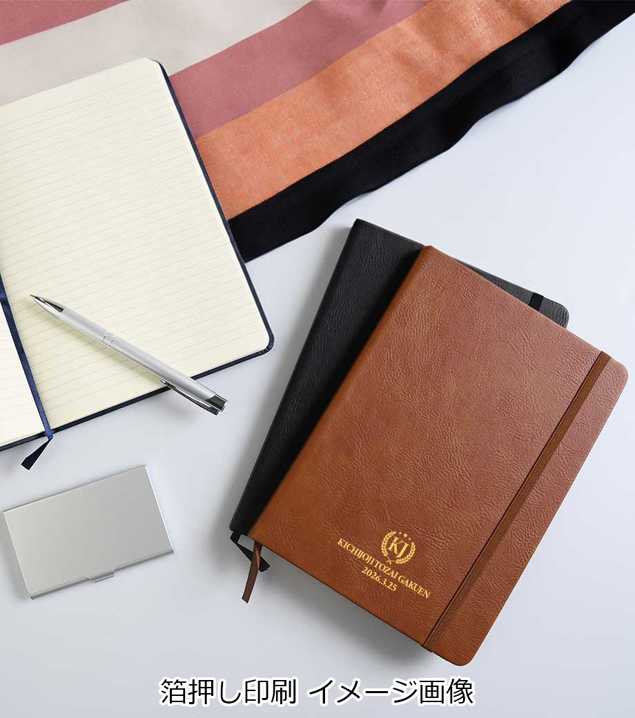 表紙に1色・空押し・箔押し・フルカラー印刷で名入れできます。企業名や学校名を印刷すれば、宣伝効果の高い販促品に。セミナーの参加特典や卒業記念品などにおすすめです。