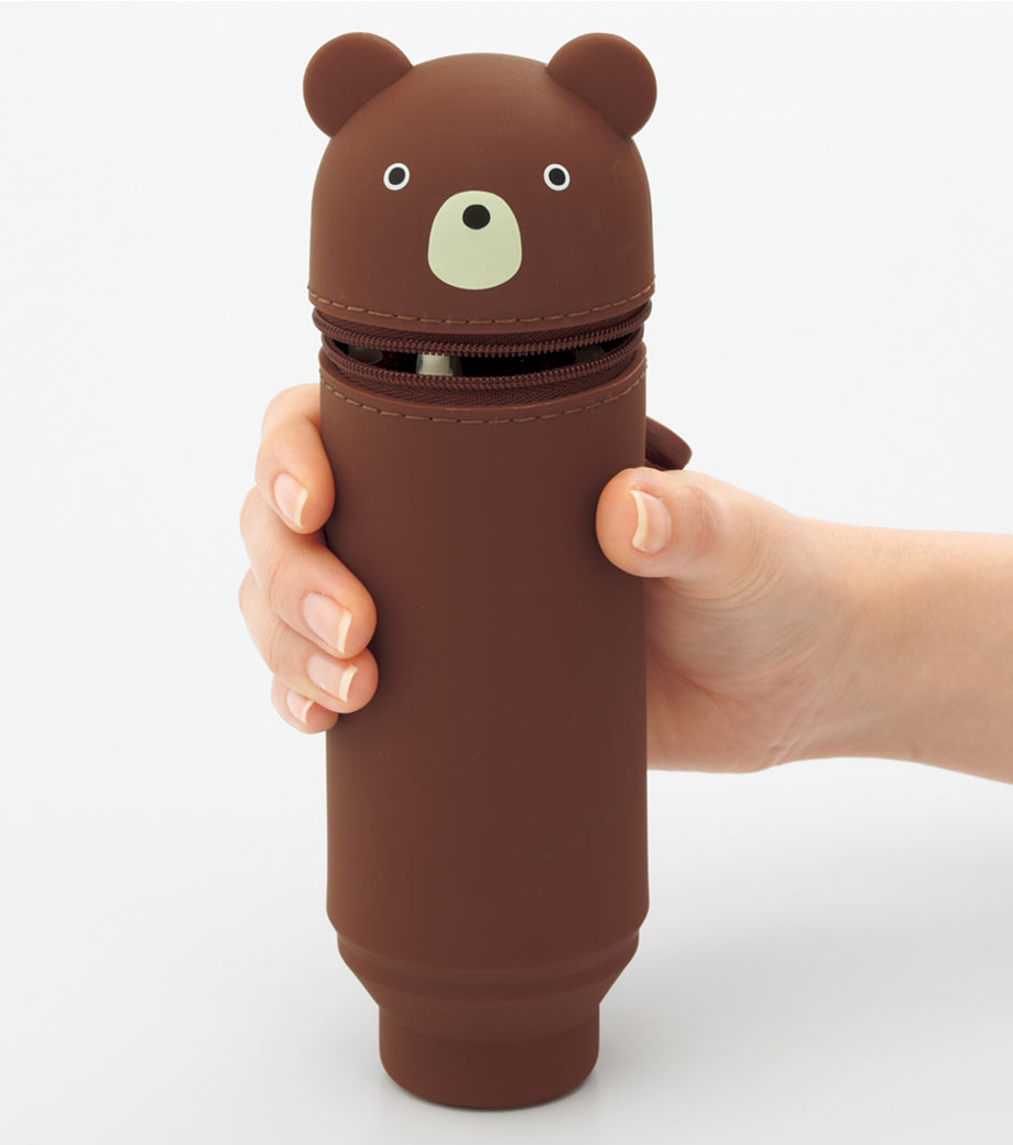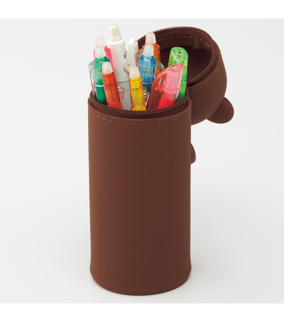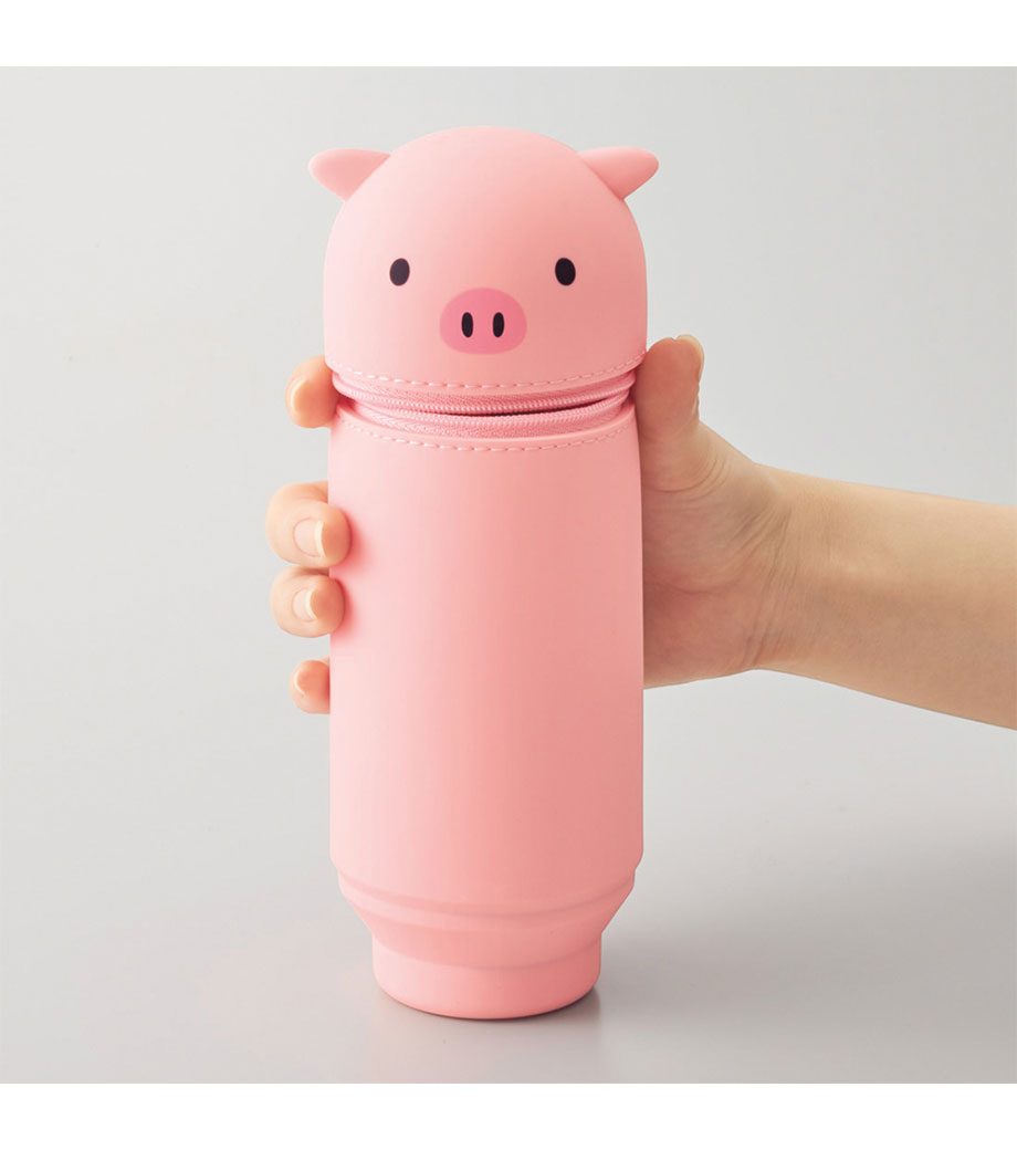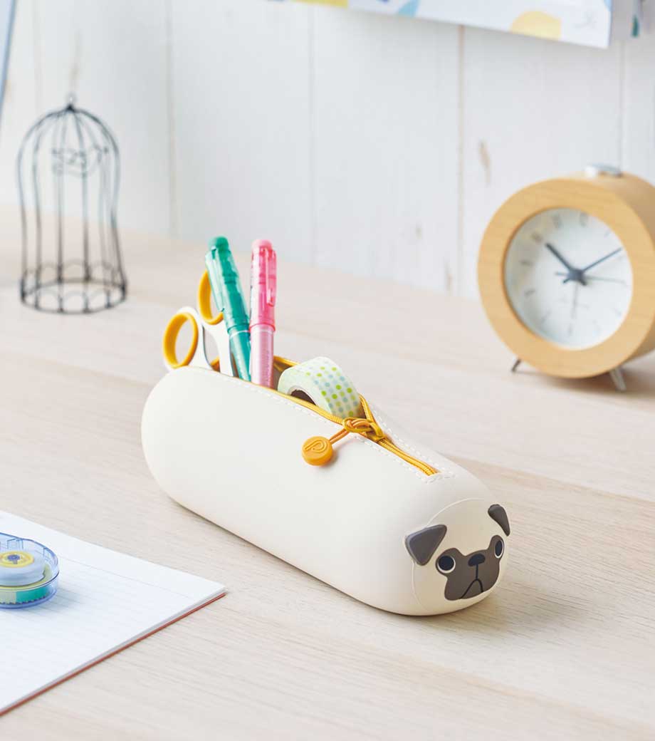 SMART FIT PuniLabo(プニラボ)スタンドペンケースは、デスクでペンスタンドのように立てて使えるペンケースで、ペンは約15本入ります。ファスナーを開けて本体を握り、ポコッと押し下げるとペンスタンドに早変わり!使いたいペンが一目で見つかるので、筆記作業がスムーズに。しまうときは底を引っ張り出すとペンケースに戻ります。フタの内側には消しゴムホルダー付。見た目だけでなく、機能面も計算された使いやすさを追求。