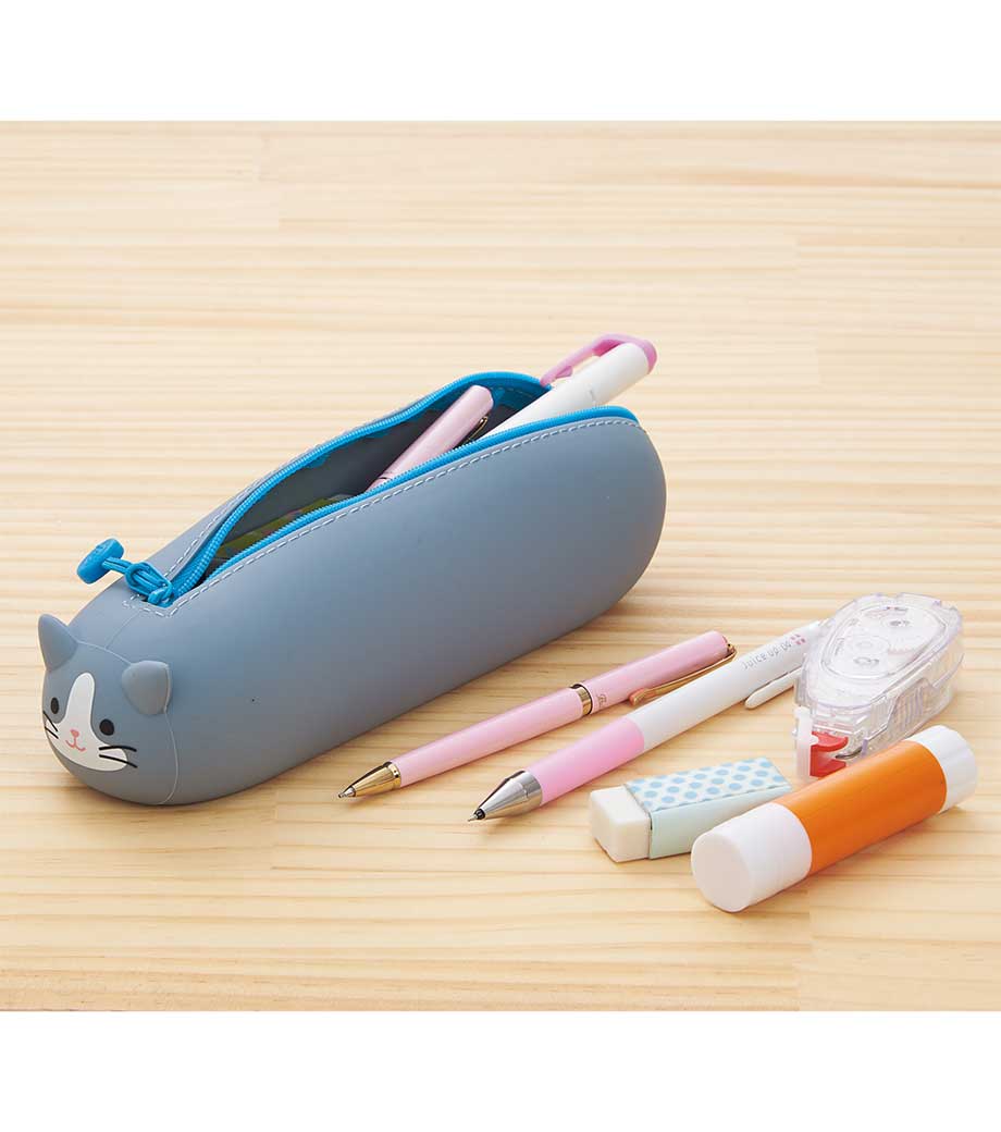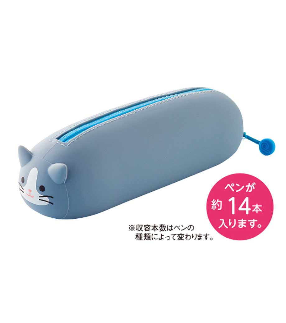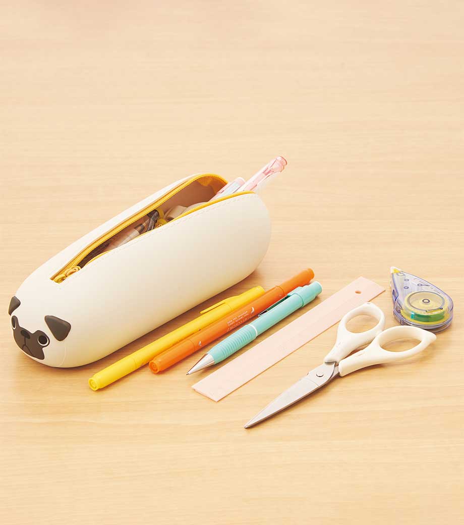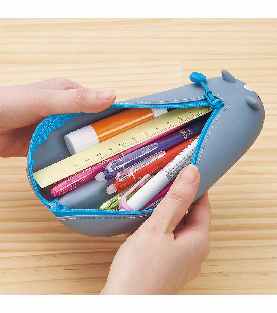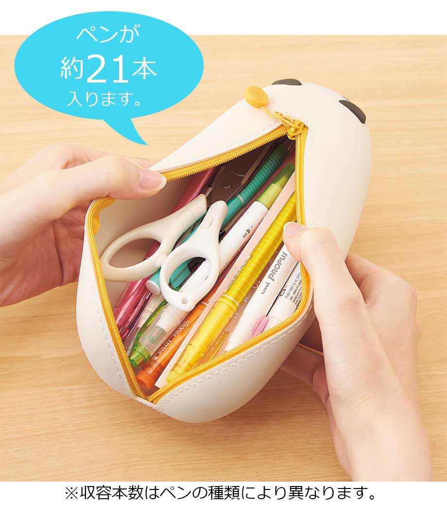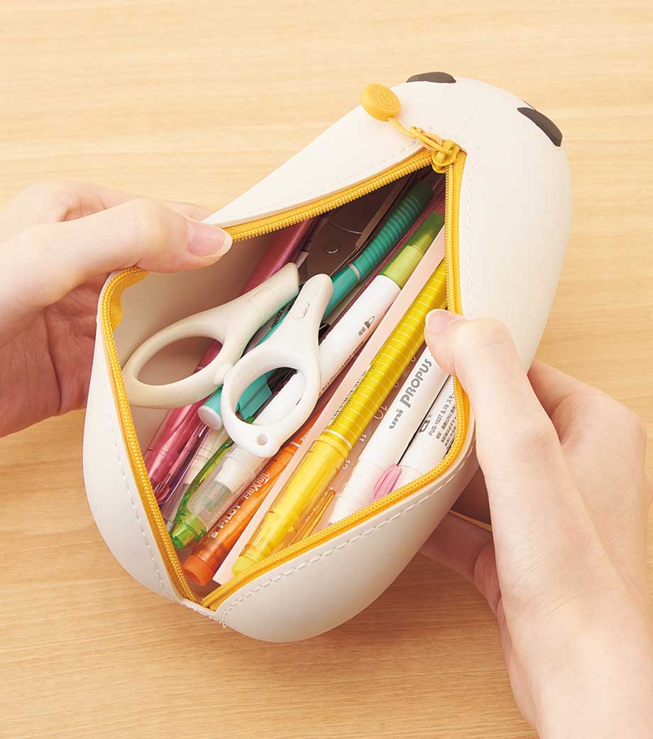リヒトラブ SMART FIT プニラボ 寝ころびペンポーチ BIGはペンを最大約21本も収納できる大きめな筆箱。のりやハサミなど文具小物収納もお任せ!びよーんと寝そべっているかのようなフォルムに癒されます。お腹(底部)がフラットになっているのでデスク上で転がらない優秀さも持ち合わせているんですよ。ファスナーストラップがまるでしっぽのようでかわいいですね。