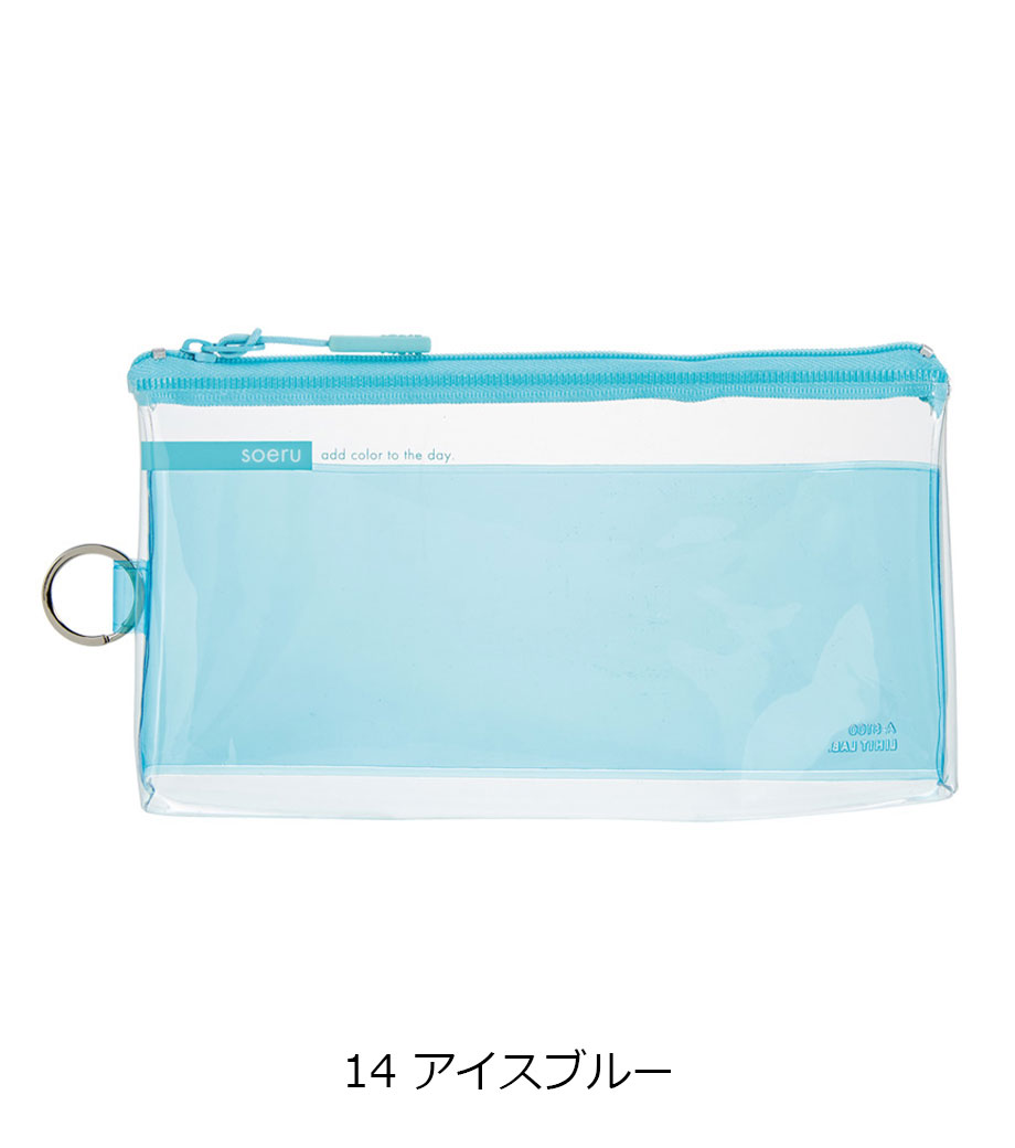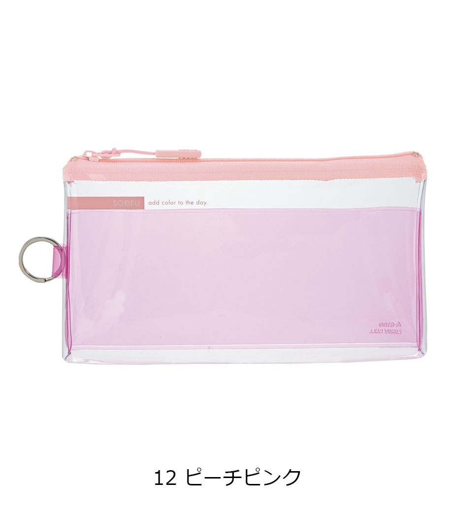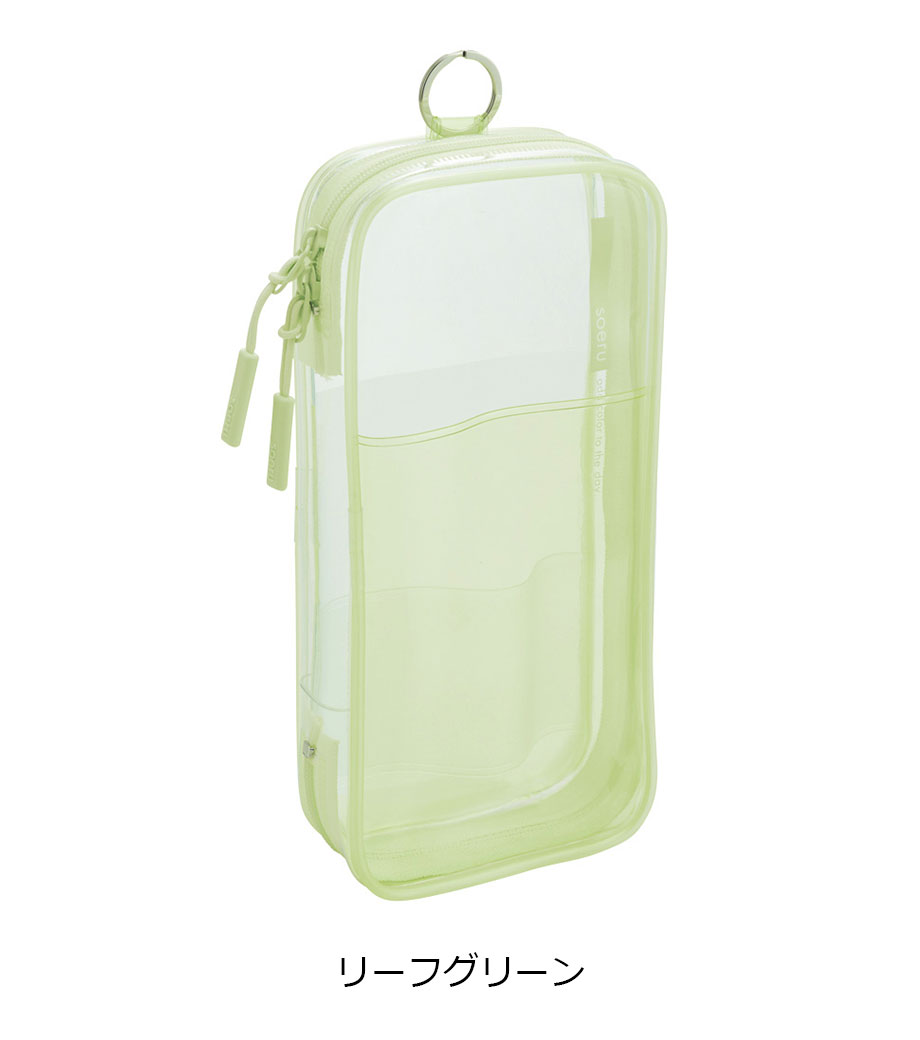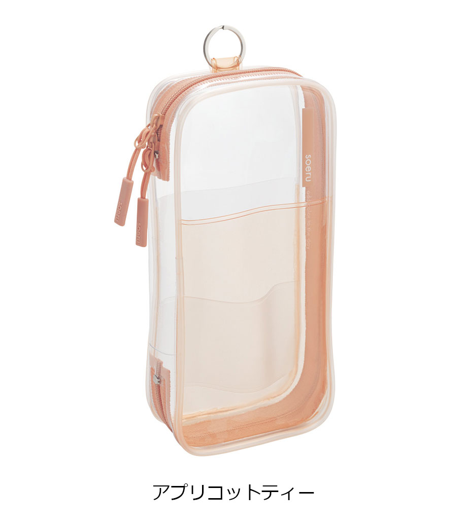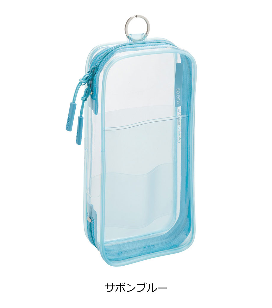 リヒトラブ soeru クリヤーペンケースは、中の文具が確認しやすい透明タイプの筆箱で、取り出しがラクラク!おしゃれな色付きの内ポケットには、小物を分けて入れられます。側面のリングは、キーホルダーを付けることができます。