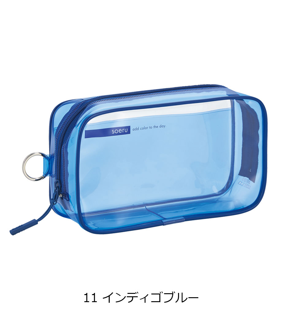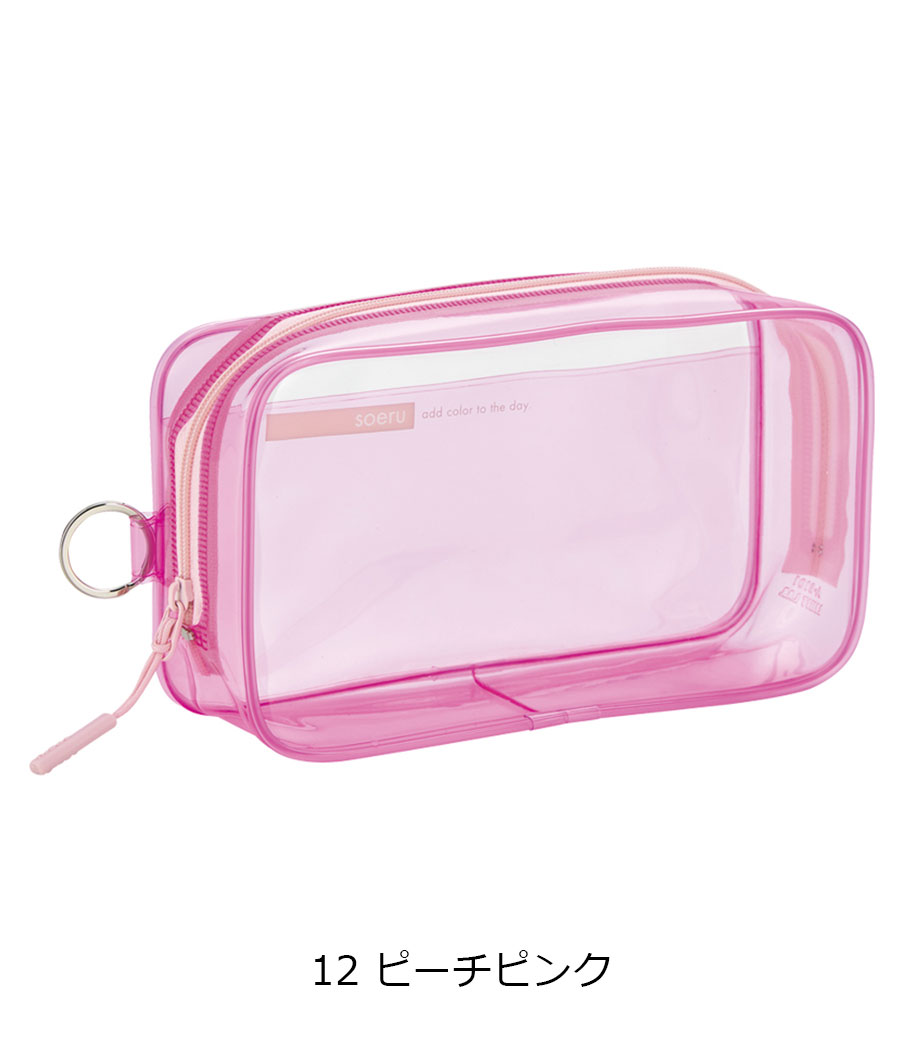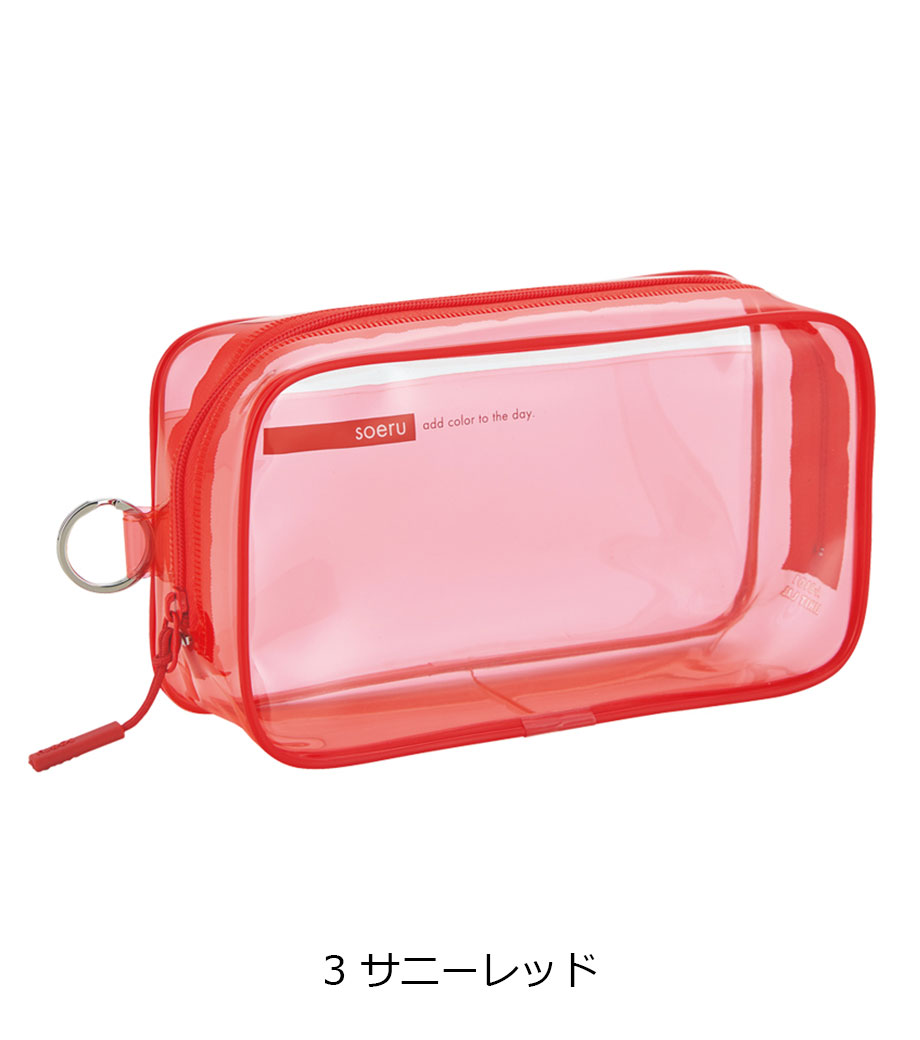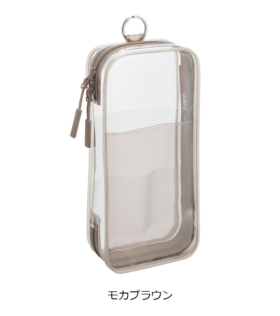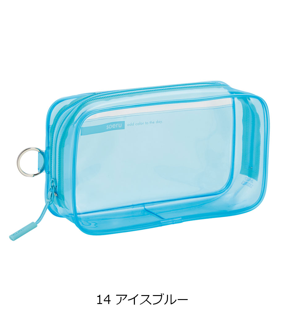 リヒトラブ soeru クリヤーペンケースは、中の文具が確認しやすい透明タイプの筆箱で、取り出しがラクラク!おしゃれな色付きの内ポケットには、小物を分けて入れられます。側面のリングは、キーホルダーを付けることができます。