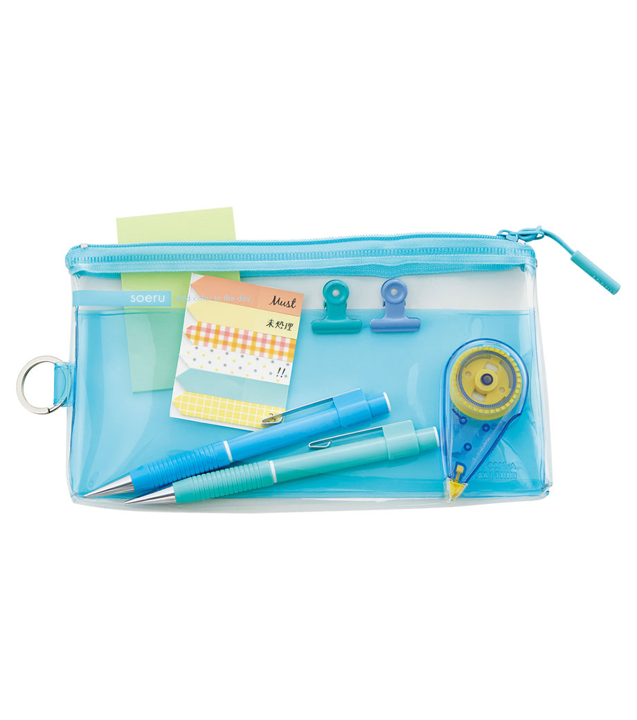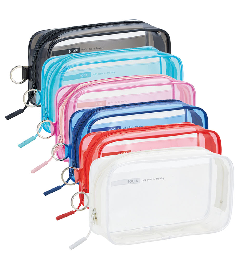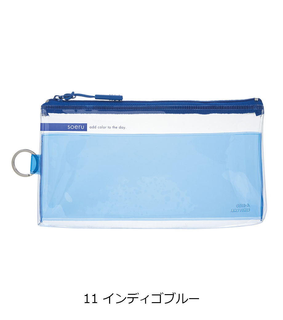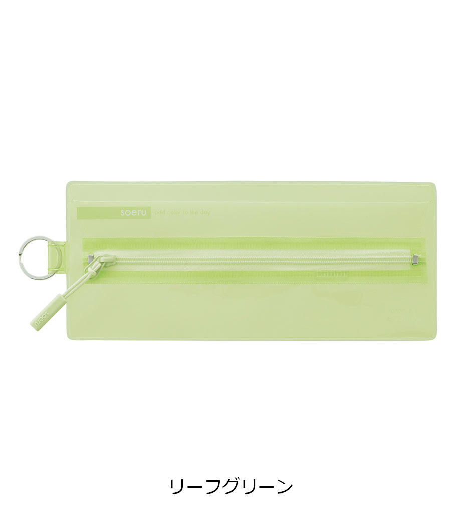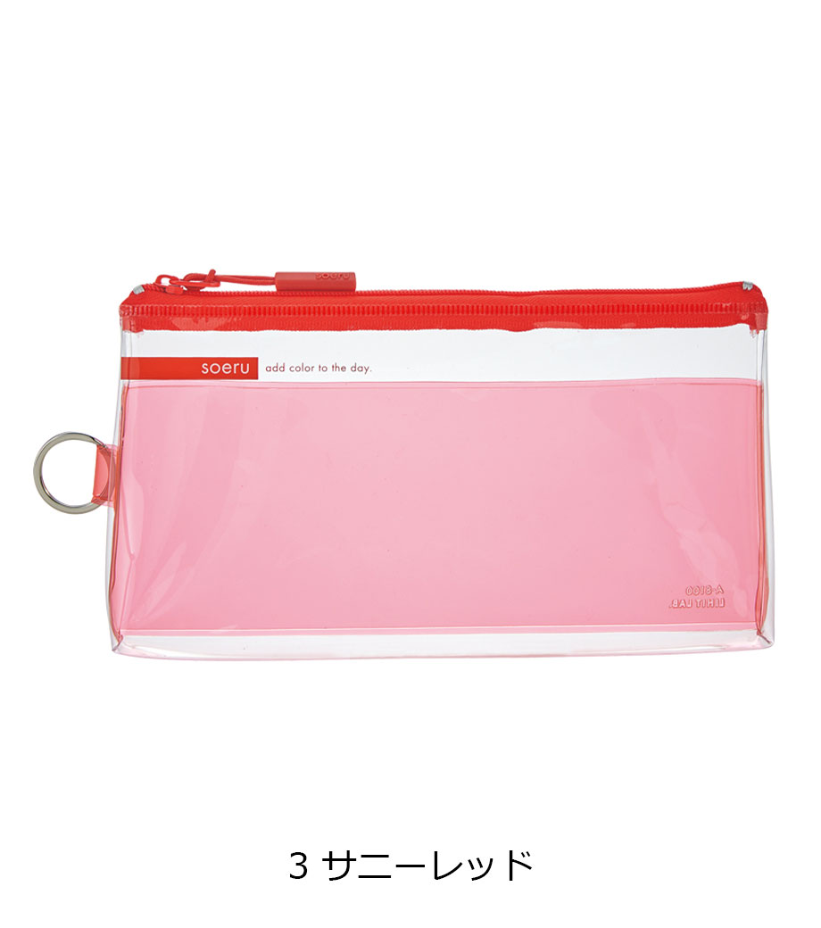 リヒトラブ soeru クリヤーペンケースは、中の文具が確認しやすい透明タイプの筆箱で、取り出しがラクラク!おしゃれな色付きの内ポケットには、小物を分けて入れられます。側面のリングは、キーホルダーを付けることができます。