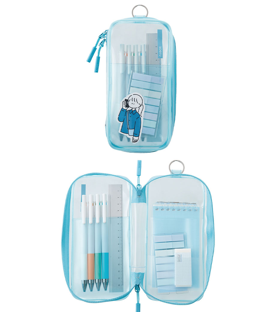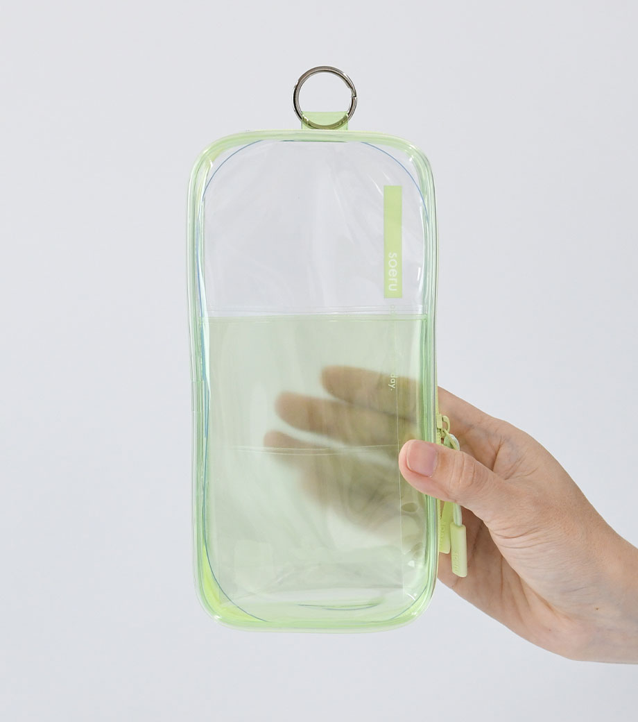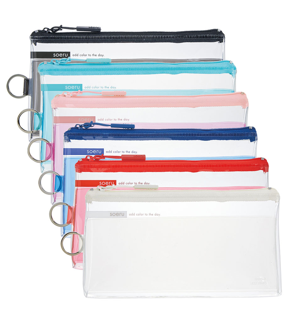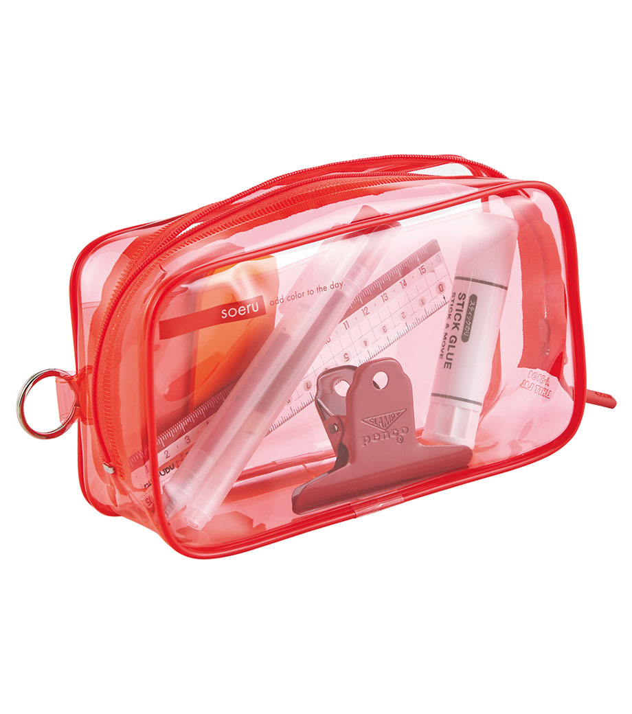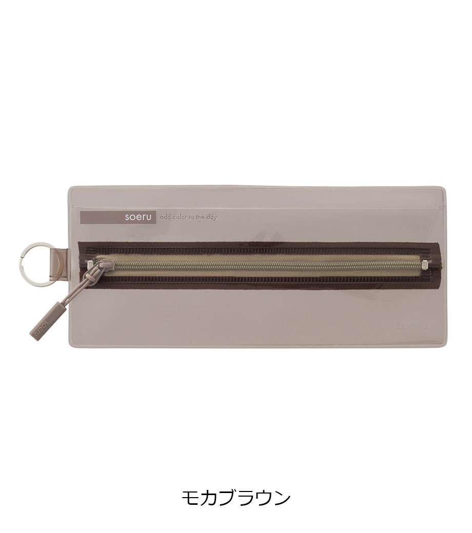 リヒトラブ soeru クリヤーペンケースは、中の文具が確認しやすい透明タイプの筆箱で、取り出しがラクラク!おしゃれな色付きの内ポケットには、小物を分けて入れられます。側面のリングは、キーホルダーを付けることができます。