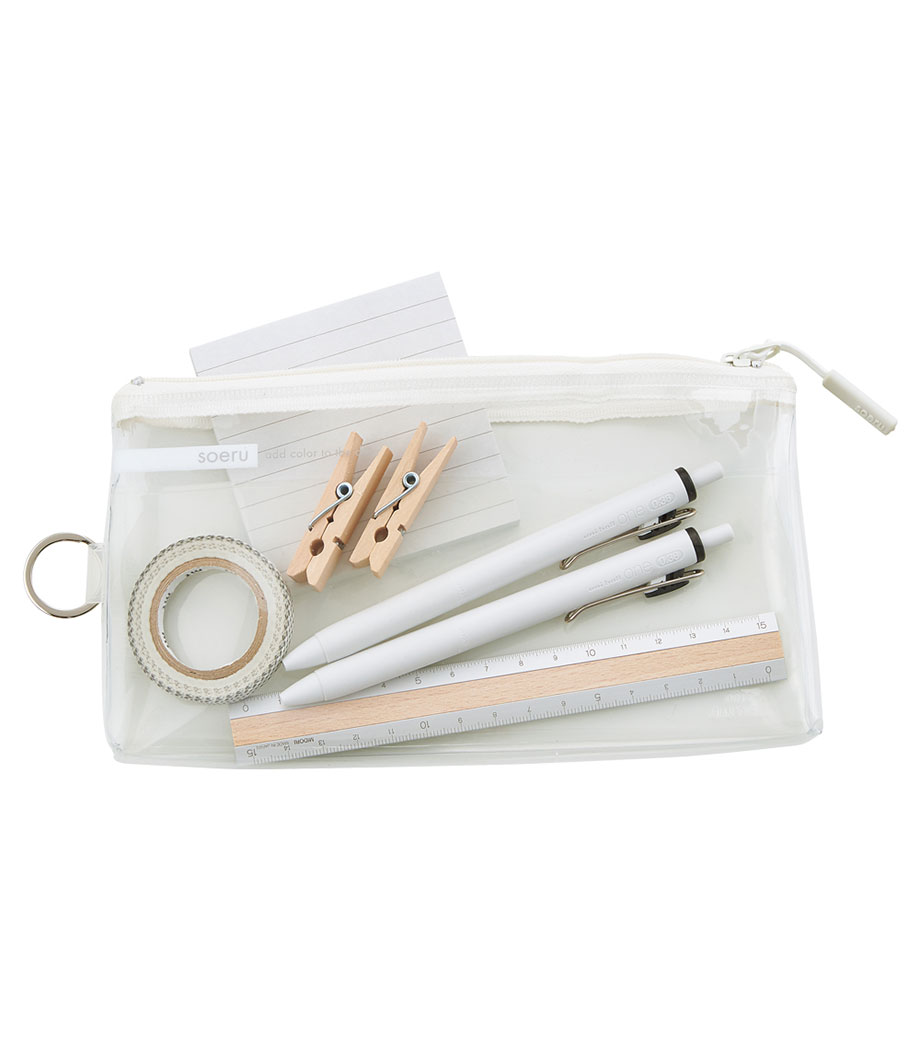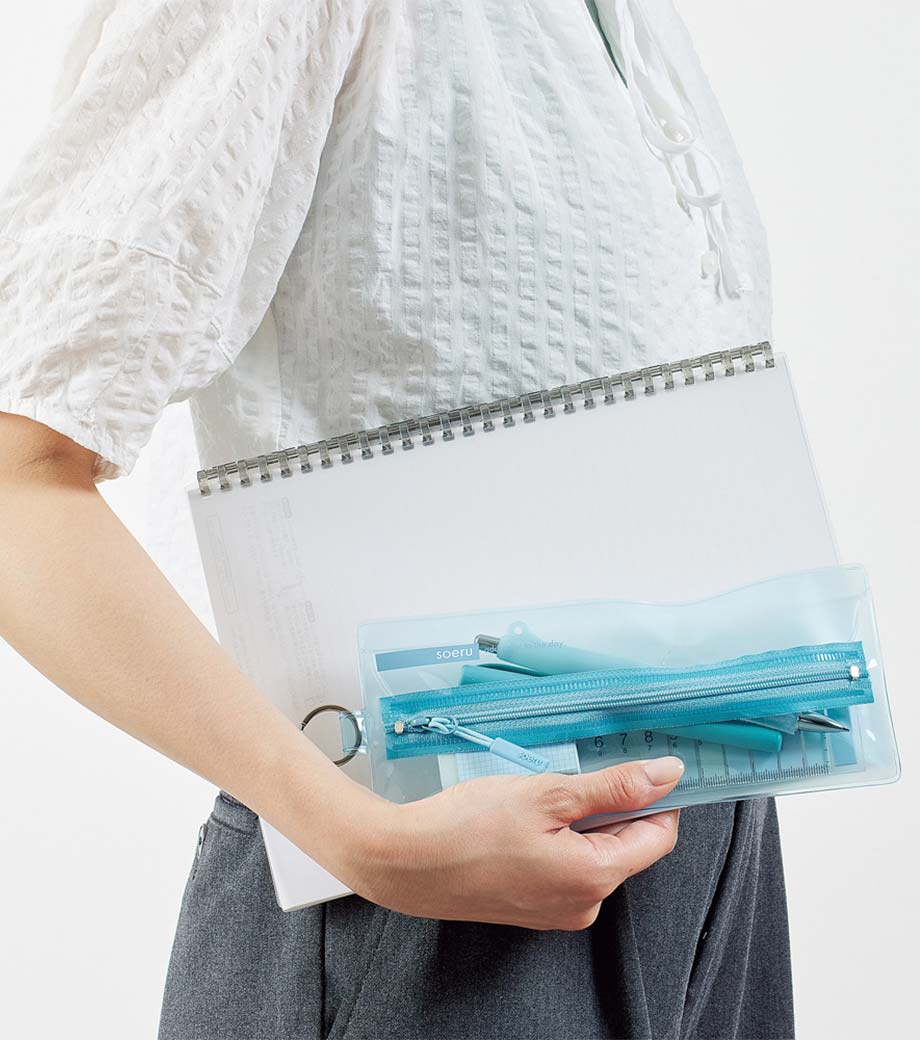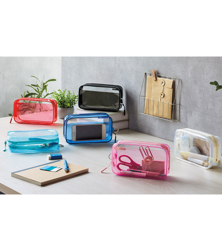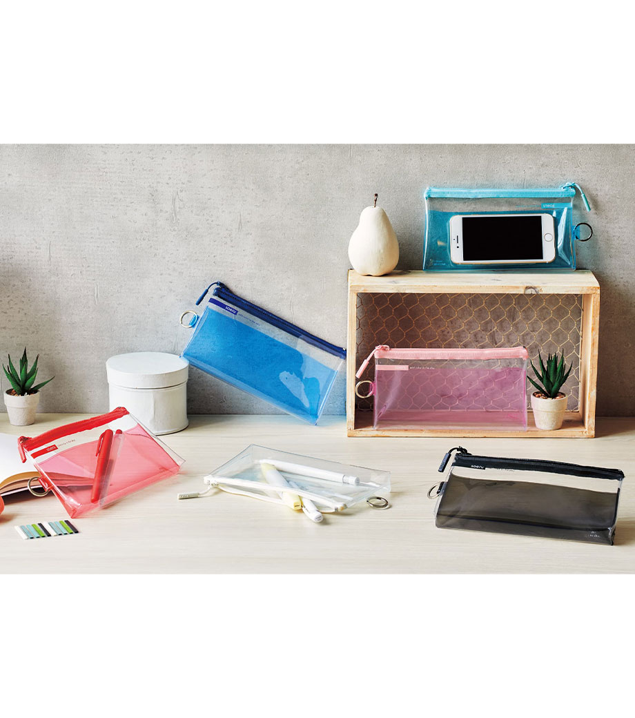 暮らしに彩りを“そえる”文具メーカーLIHIT LAB.(リヒトラブ)の商品。耐久性があり軽量なPVC素材を使用。スリムなマチ付きでペンは約20本入ります。