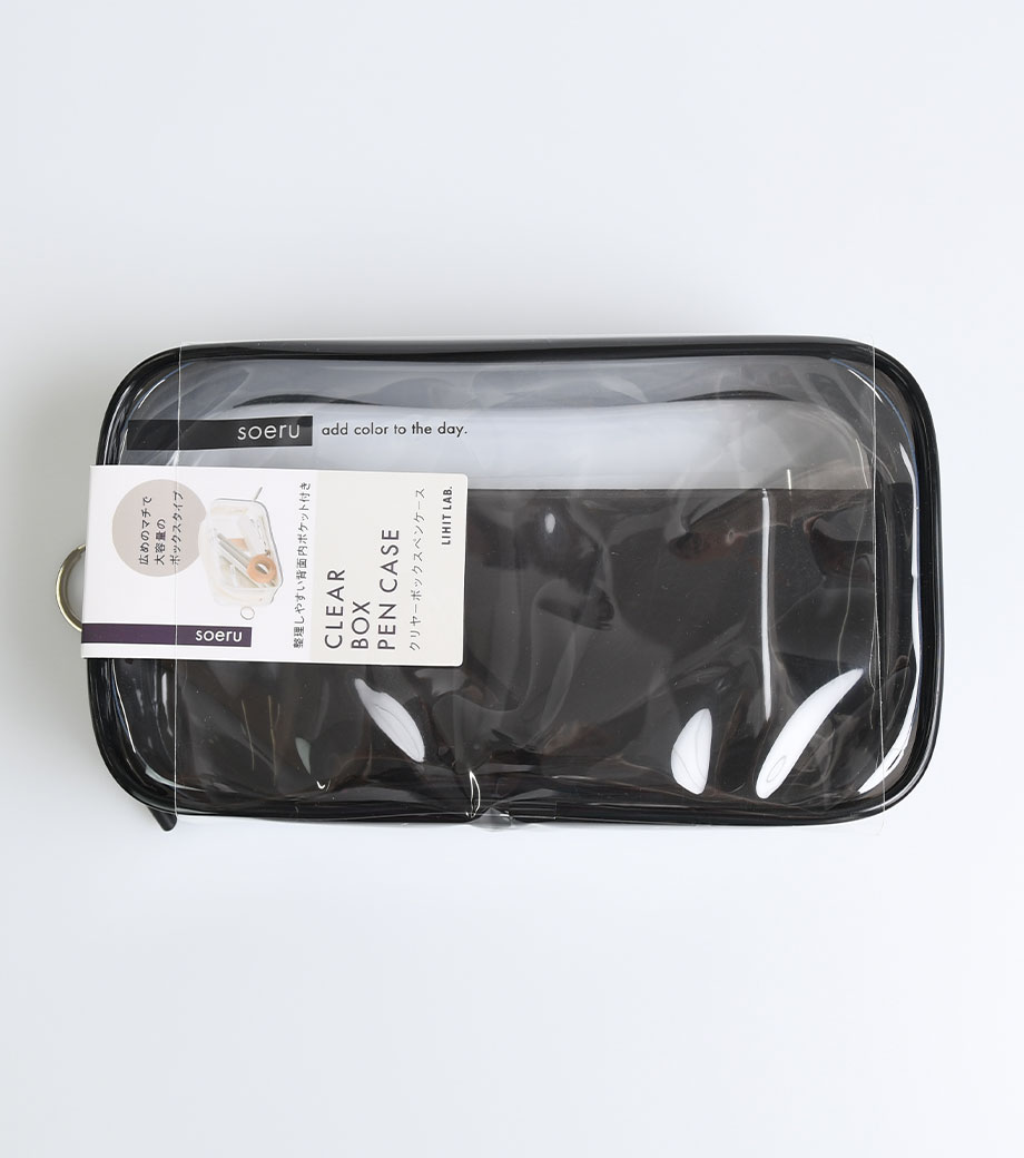 リヒトラブ soeru クリヤーボックスペンケースは、広めのマチで自立するボックス型のケースです。透明なので中身が確認しやすく取り出しも楽々。おしゃれな色付き内ポケットには小物を分けて入れられます。