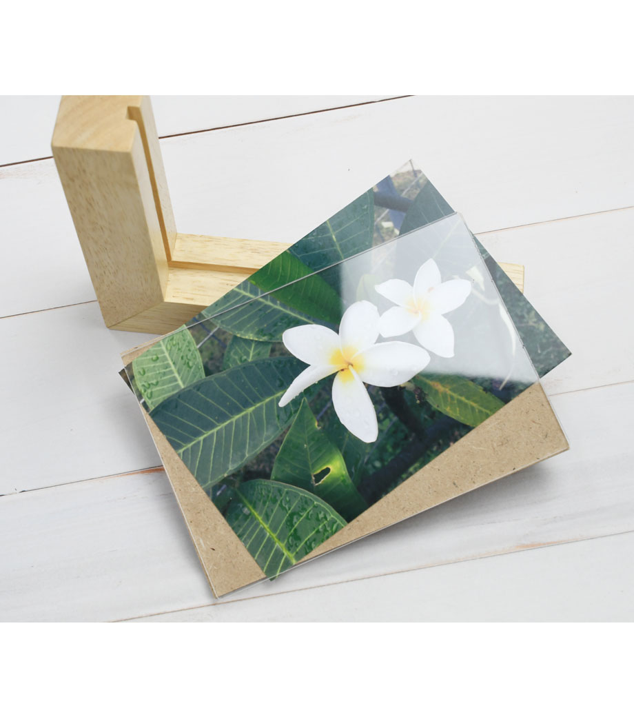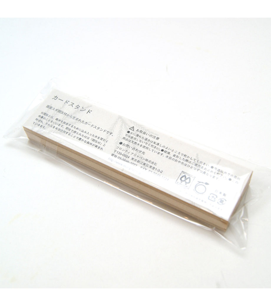 カードスタンドは国産杉の間伐材を使用したエコグッズ。ポストカードやショップカード、L判写真を差し込むだけで使えるスタンド。杉の木そのままのおしゃれでナチュラルな雰囲気は、どんな場所にもなじみます。