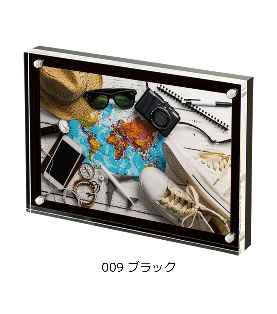 「アクリルフォトフレーム」は、L版サイズ対応のスタイリッシュなアクリル写真立てです。名入れは1色印刷が可能。お好みのデザインでオリジナルフォトスタンドをお作りいただけます。