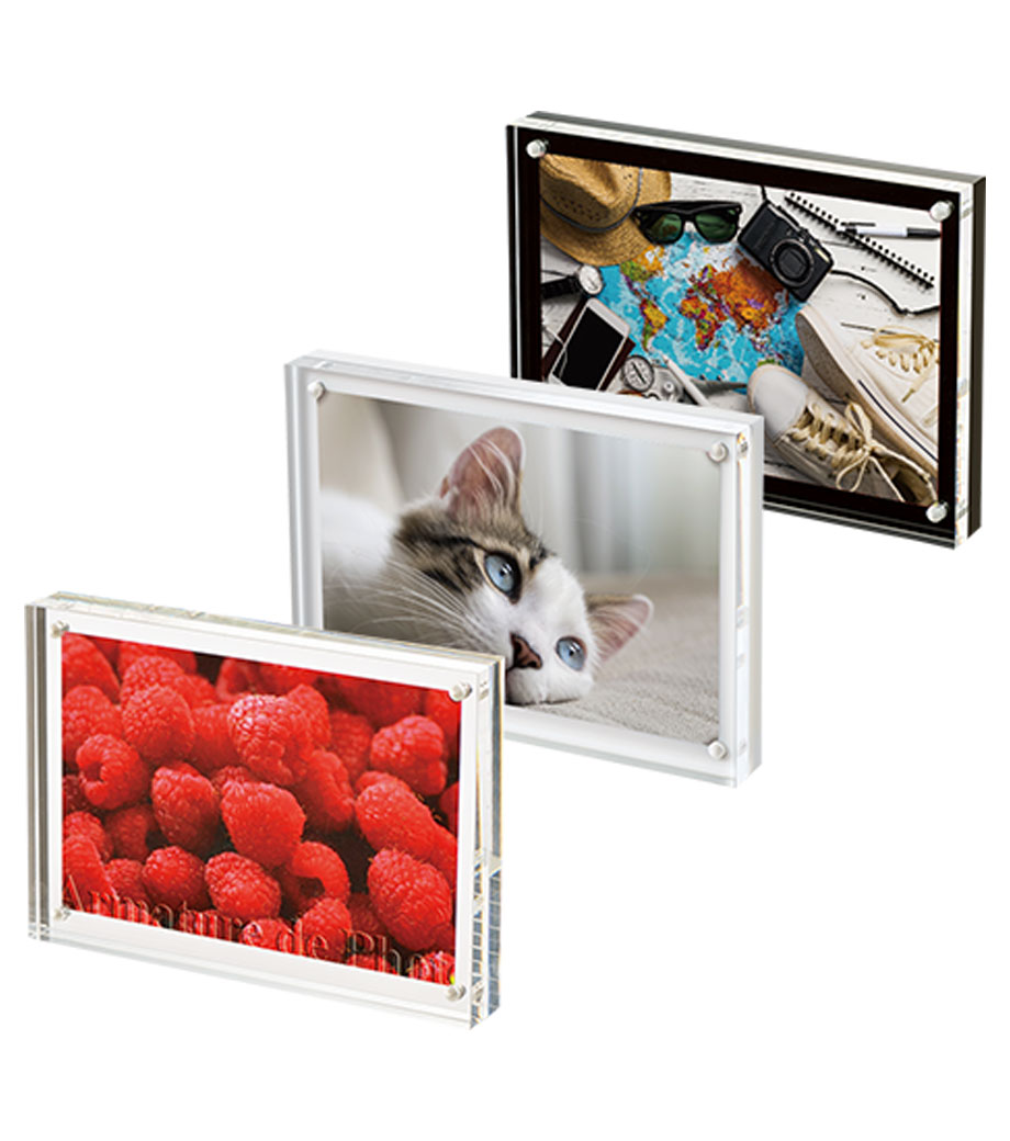 アクリルウッドフレームはアクリルの四隅がマグネットになっており、L判の写真を挟むことが出来ます。簡単にフレームが取り外せるので、その日の気分でいろいろな写真に取りかえられます。