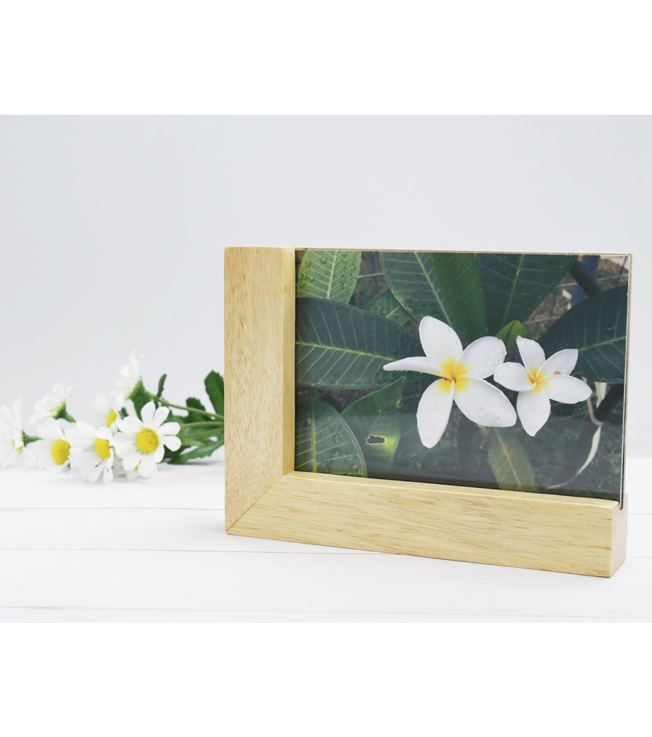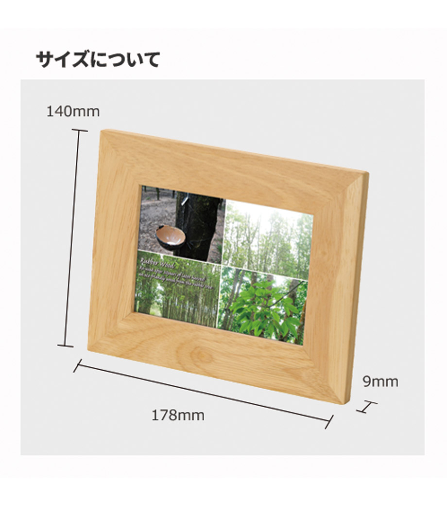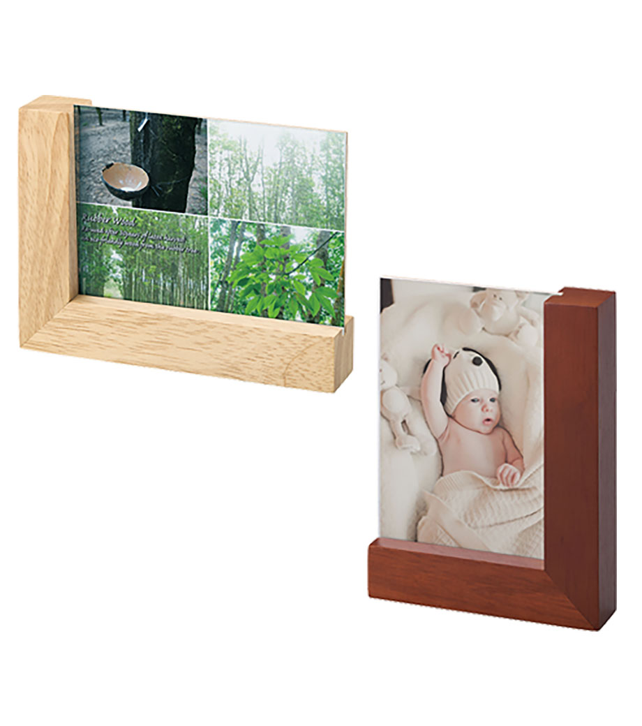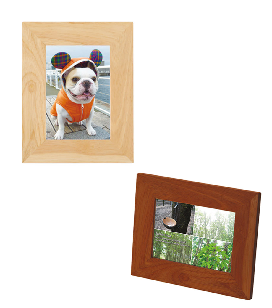 ラバーウッドフォトスタンドは、印刷でオリジナルの写真立てが作れるゴムの木を有効活用して作ったエコグッズ。ラバーウッドならではの、ぬくもりと上質感が楽しめます。