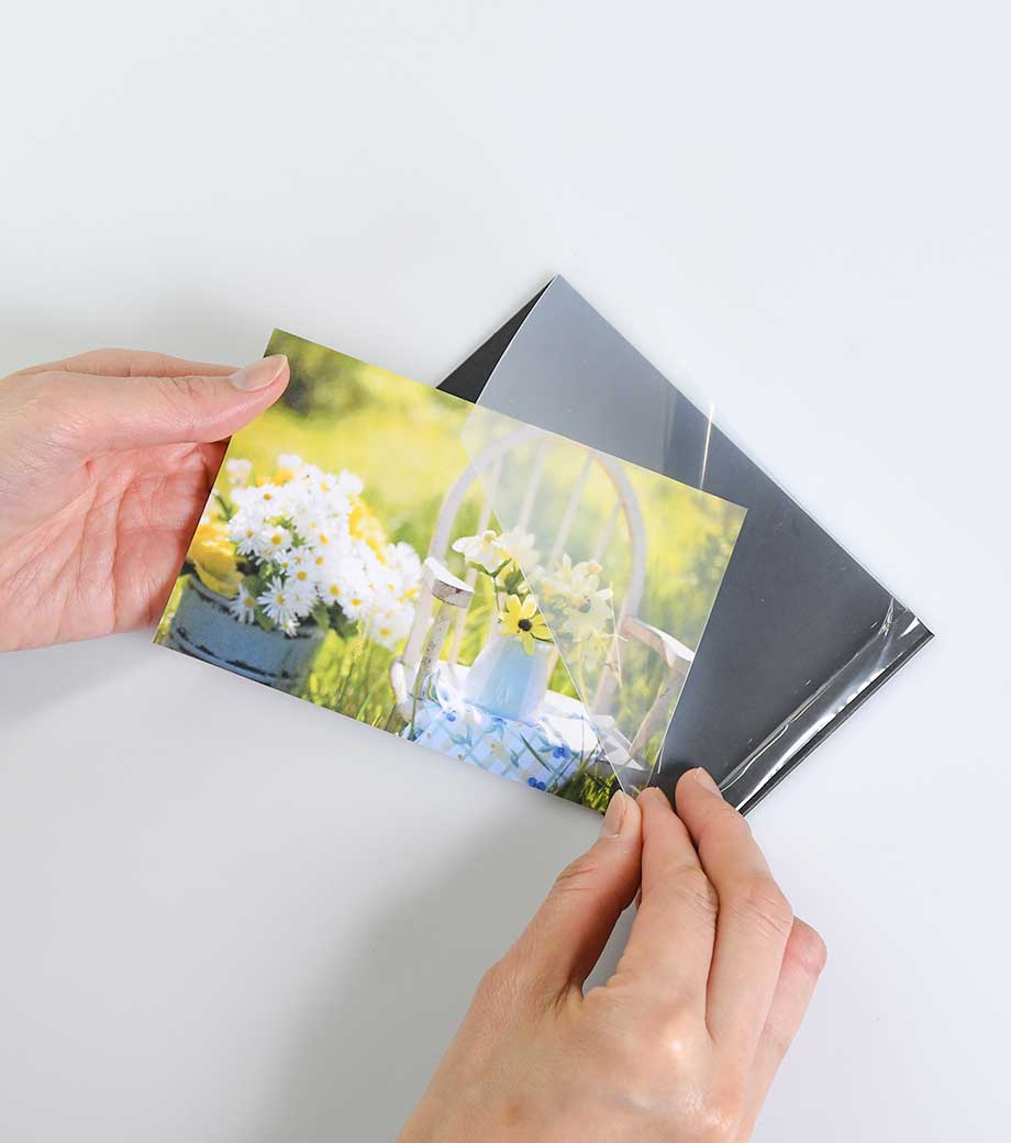 写真の入れ替えが簡単なマグネット式。その日の気分で写真を入れ替えたり、お店の日替わりメニューを入れるのにピッタリです。ラッピングをして卒業記念や周年記念のギフトに大変おススメです。