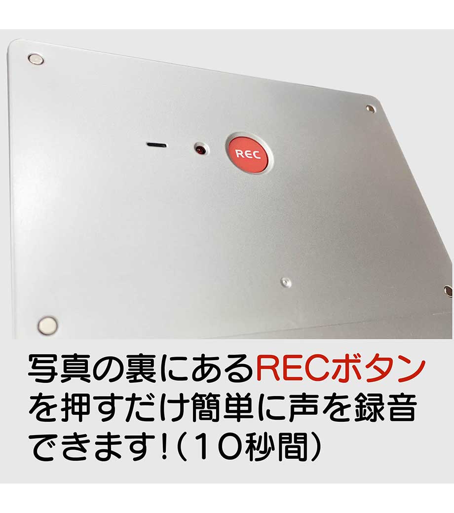 レコーダーフォトフレームクロックは、はがきサイズの写真が飾れる卒業記念品にぴったりのデジタル時計。10秒間の録音ができ、録音した音声をアラーム音に設定することも可能です。日常使いに便利な日付表示、温度表示、スヌーズ機能付き。操作ボタンが裏面に配置してあり、名入れが映えるスッキリしたデザインです。