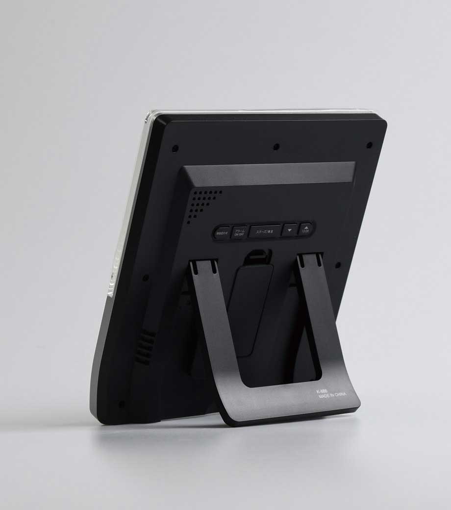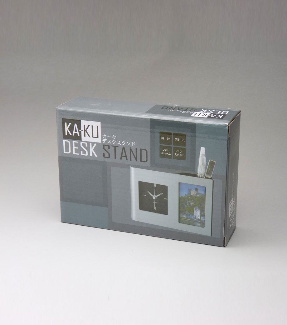 「カークデスクスタンド」は、シンプルなモノトーンデザインのデスククロック。時計・アラーム・フォトフレーム・ペンスタンドが付いています。フォトフレームにお気に入りの写真を入れれば、あなただけのオリジナルグッズに。愛着のわく一品になります。