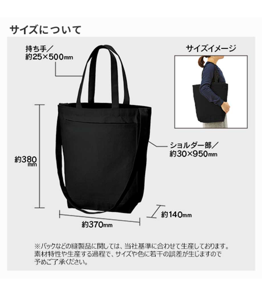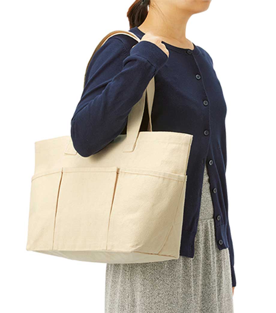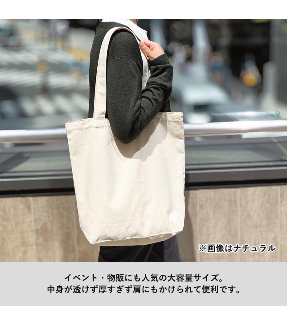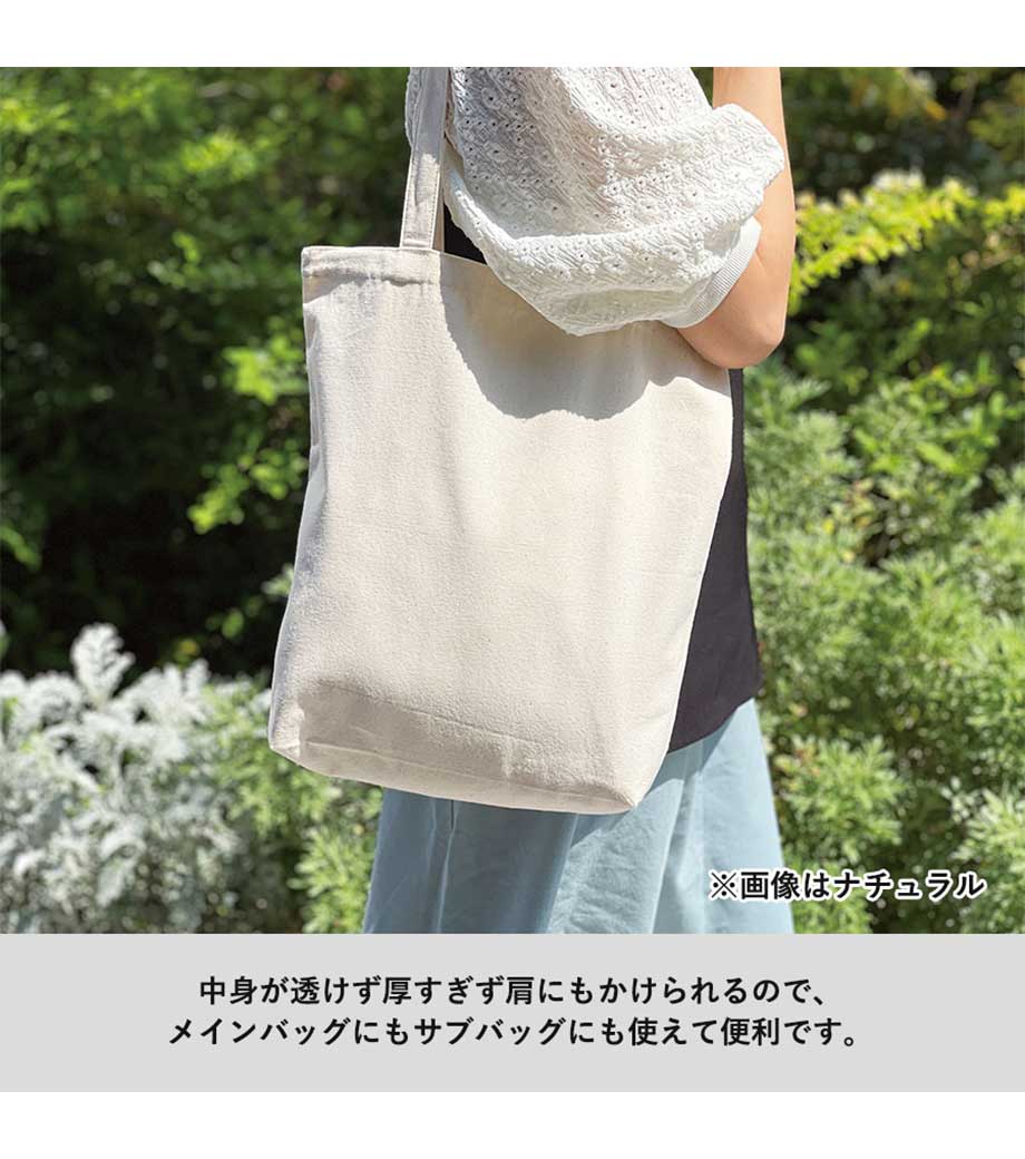 柔かな手触りなのにしっかりと強度のある、生地厚10オンス。頼れる大容量タイプの肩掛けバッグです。イベントやアウトドア、レジャーなどで大活躍します。スーパーでのまとめ買いにも!