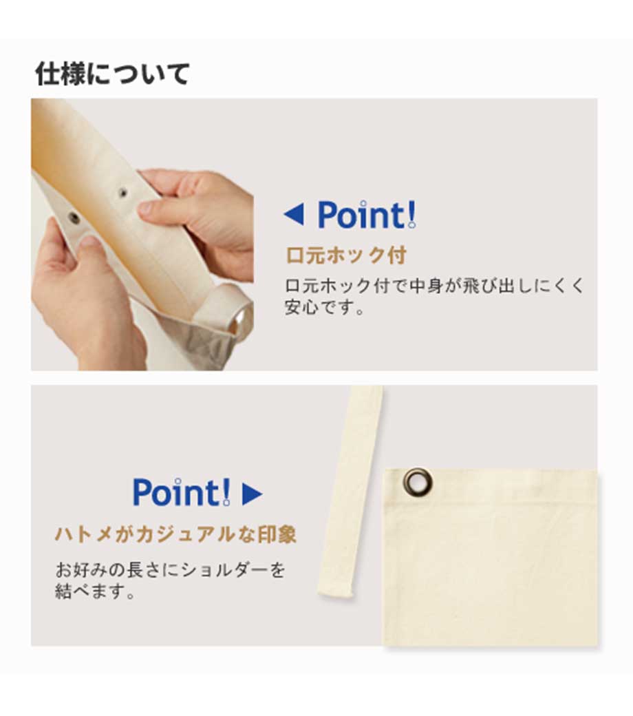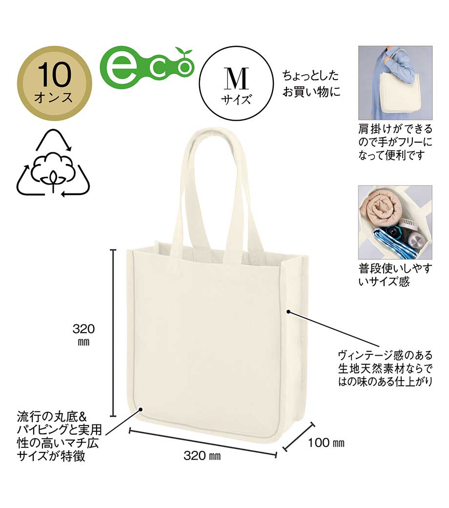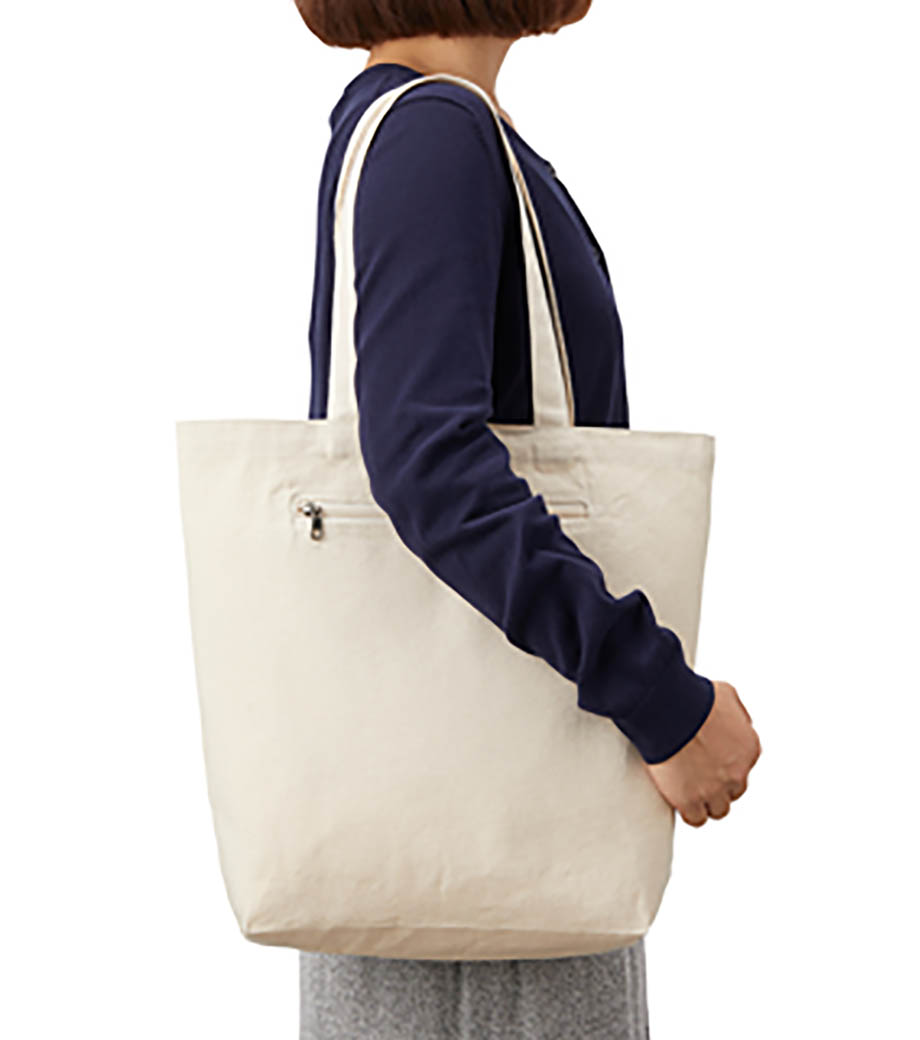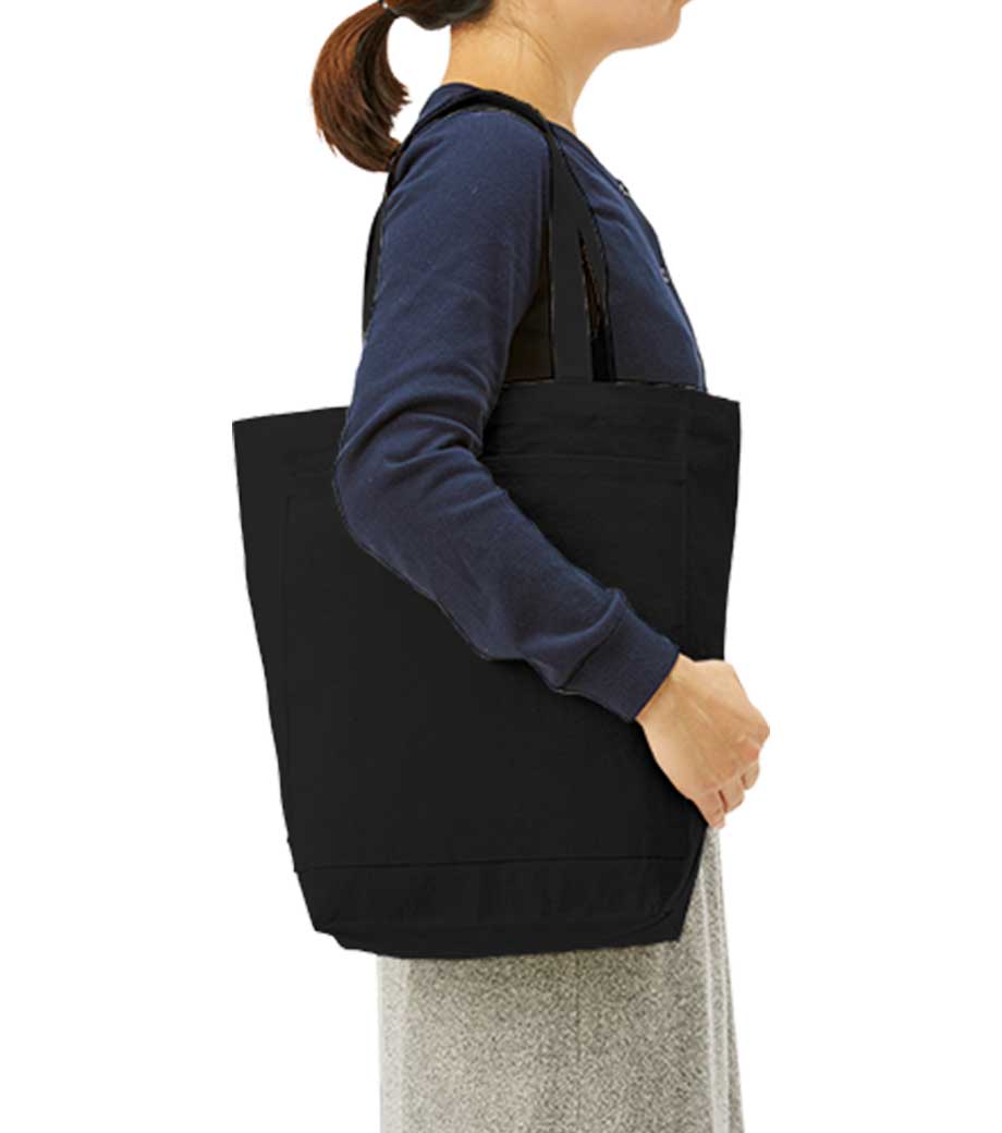 柔かな手触りなのにしっかりと強度のある、生地厚10オンス。頼れる大容量タイプの肩掛けバッグです。イベントやアウトドア、レジャーなどで大活躍します。スーパーでのまとめ買いにも!