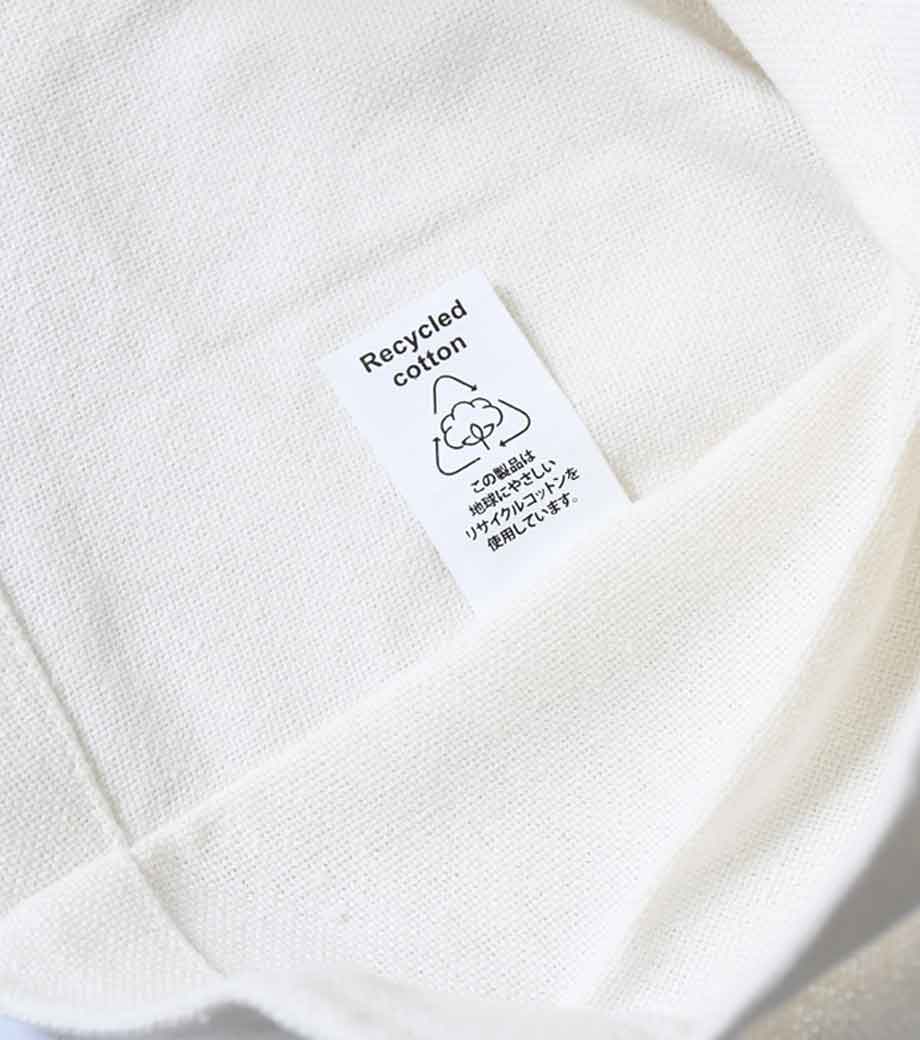 リサイクルコットンは、紡績工場や縫製工場で出る不要な生地から作られた、CO2や電気、水などの排出・使用の削減に貢献するサスティナブルな生地です。こなれ感あるデザインは他と差が付くエコノベルティグッズをお求めの方にぴったり!1色・フルカラー印刷が可能。カフェや飲食店のエコキャンペーンにお勧めです。