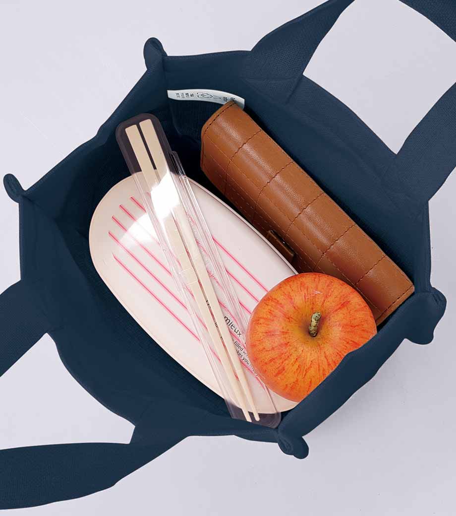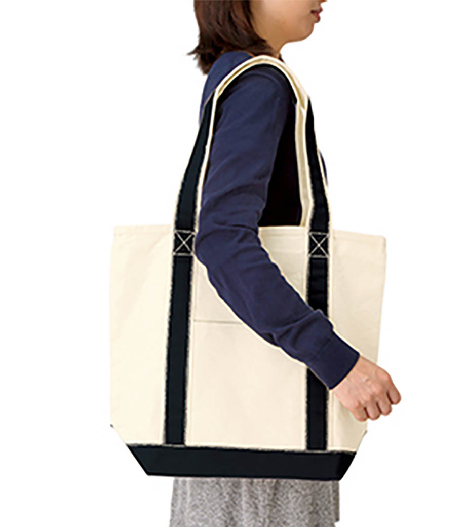 キャンバストートMLは横に広いタイプのトートバッグ。口が広いので荷物を出し入れしやすく、お買い物からお稽古バッグまでマルチに使えます。