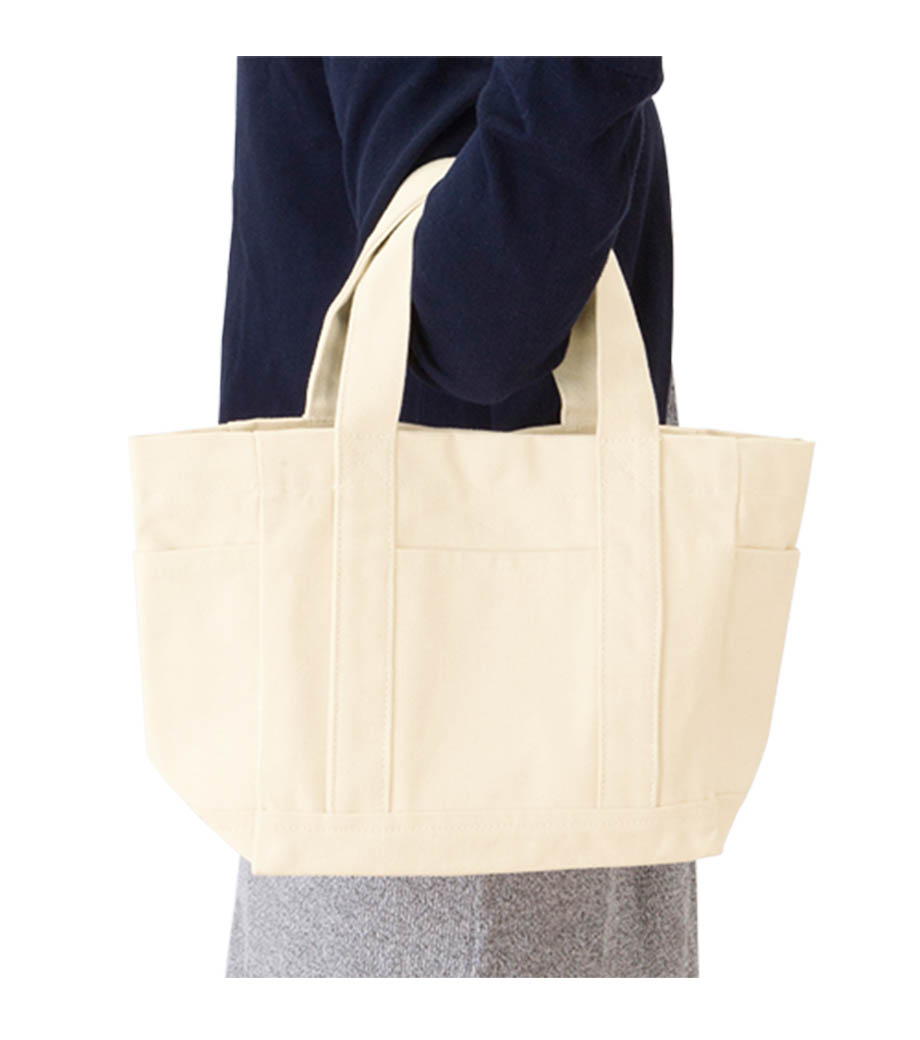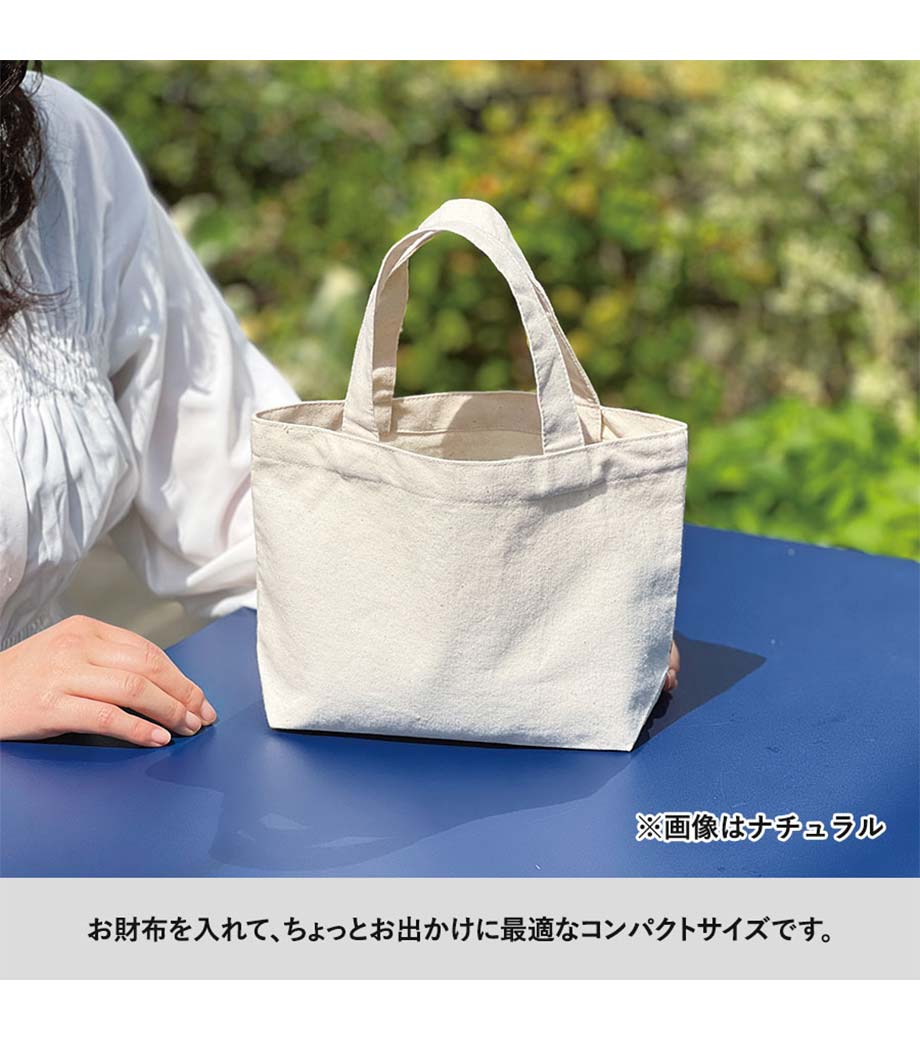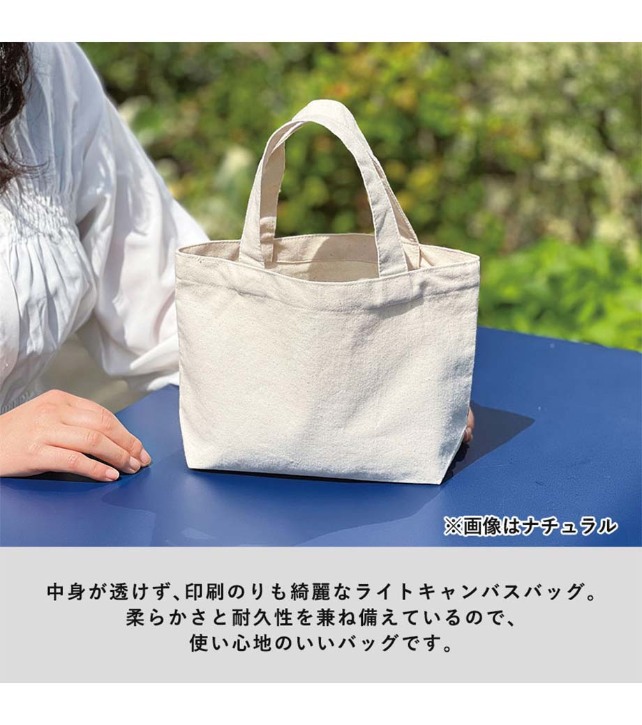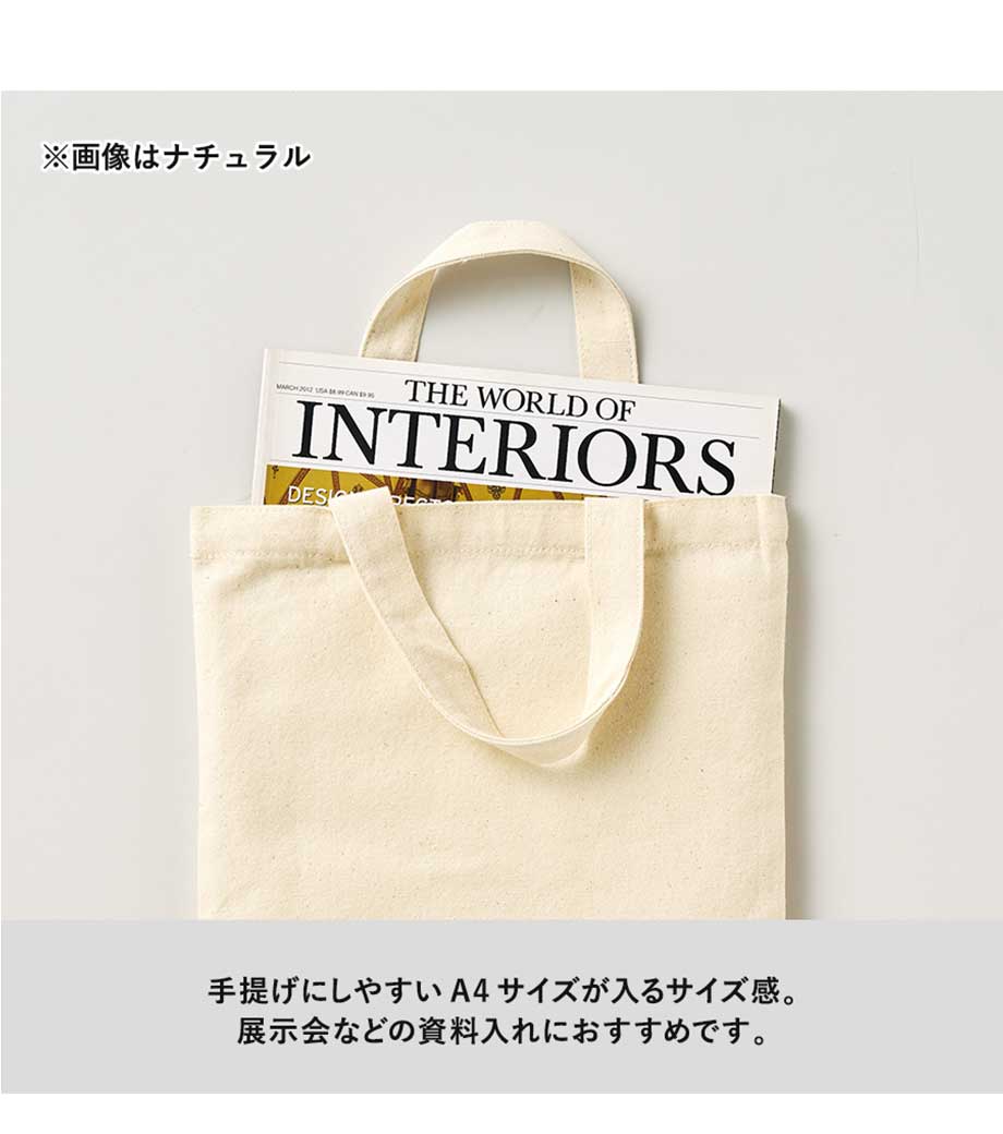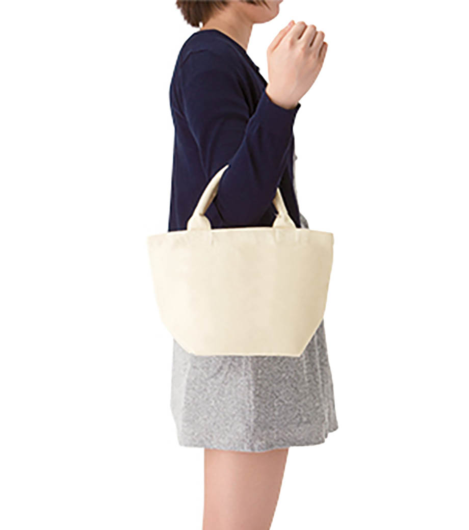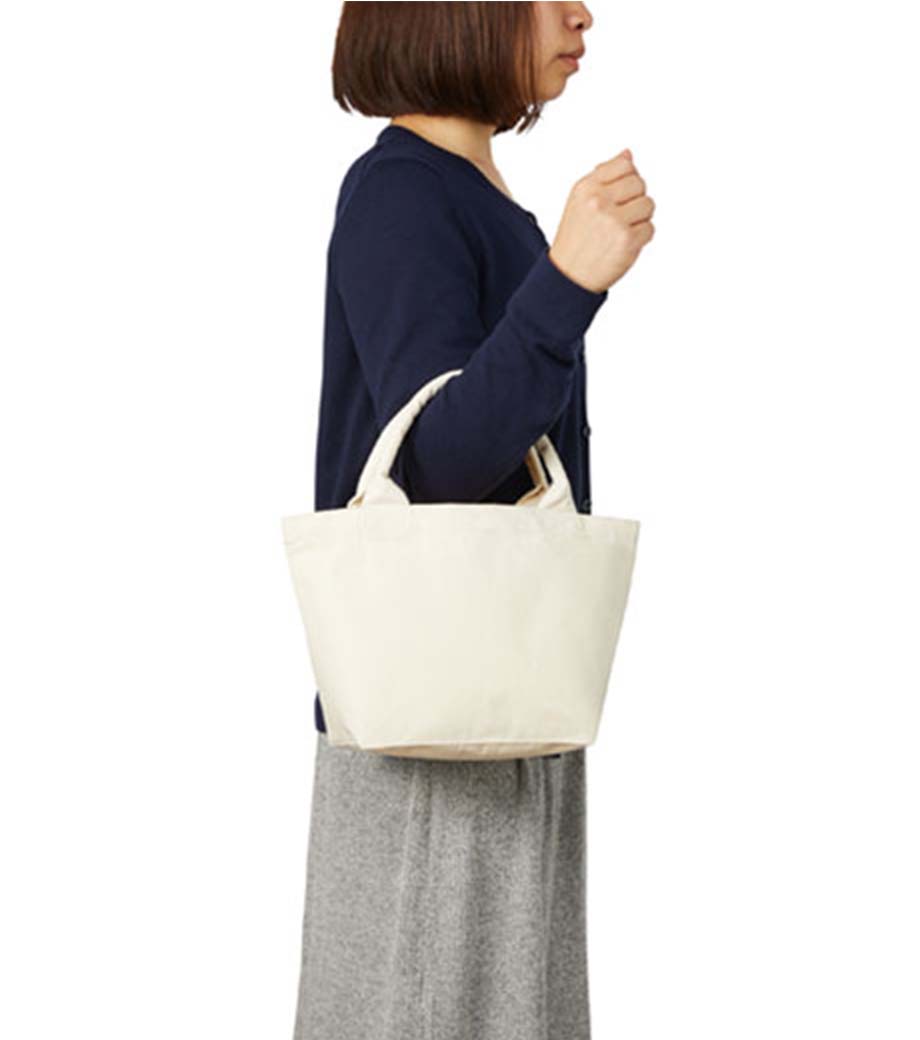 キャンバストート(S)は、コンパクトサイズなのに意外に入るミニバッグ。マチが広めで、安定感のあるデザインです。お弁当や小物などの持ち歩きにいかが。しっかりした生地でコットン100%のナチュラルな風合いが楽しめます。カラーバリエーションが豊富なので、企業カラーやイベント・展示会のイメージカラーにあわせてバッグを選ぶことができます。